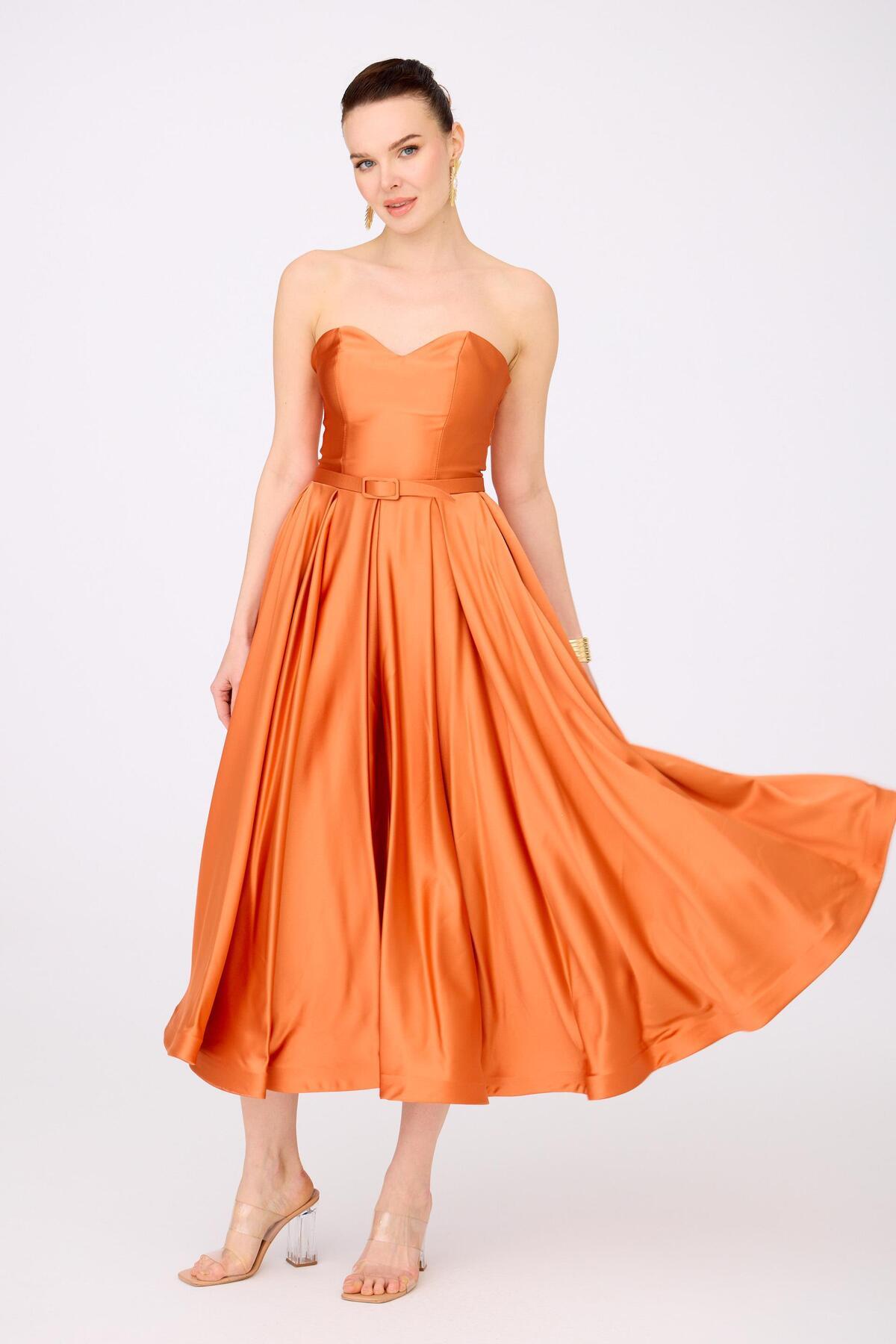Kiremit Saten Straplez Midi Söz Elbisesi ve Nişan Elbisesi Kiremit Saten Straplez Midi Söz Elbisesi ve Nişan Elbisesi 58134 42