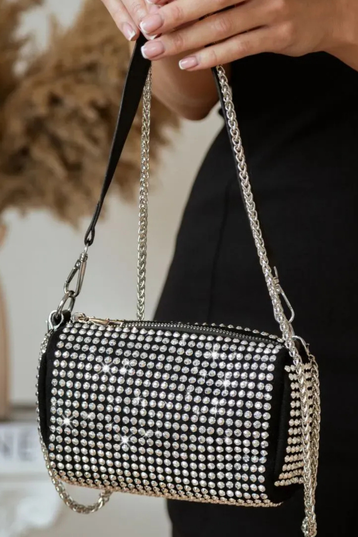 Kadın Siyah Işıltılı Taşlı Omuz Çantası Kadın Siyah Işıltılı Taşlı Omuz Çantası mojos2023 Standart