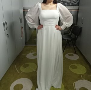 Ares Şifon Kare Yaka Nikah & Dış Çekim Elbisesi Ares Şifon Kare Yaka Nikah & Dış Çekim Elbisesi BBARES 50