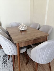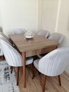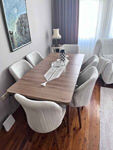 Mabel Serisi, 80x132 Mutfak Ve Salon Yemek Masası Takımı + 6 Adet Krem Sandalye Mabel Serisi, 80x132 Mutfak Ve Salon Yemek Masası Takımı + 6 Adet Krem Sandalye mabel10 تک سایز