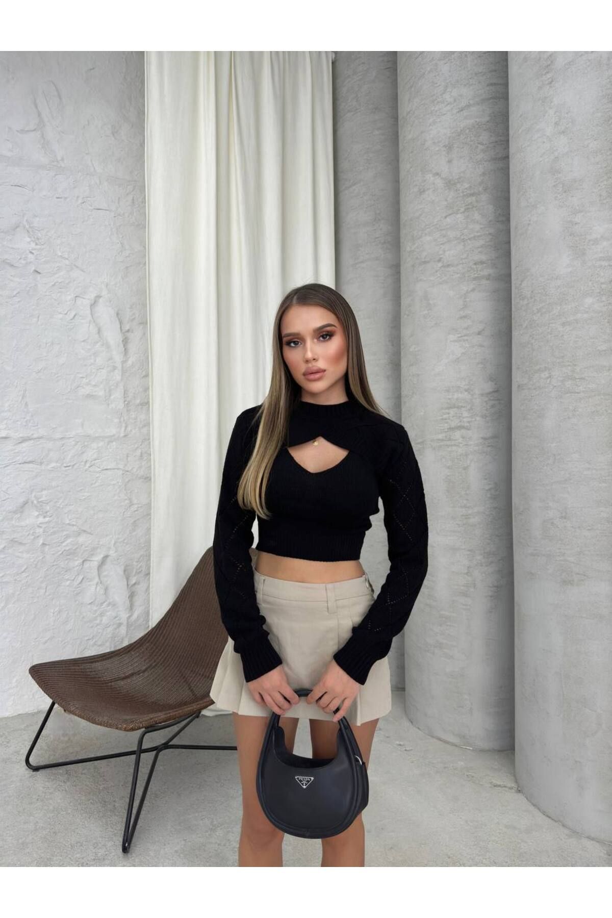 Kadın Krem Balıkçı Yaka Triko Atlet Crop Takım MT00110 Kadın Krem Balıkçı Yaka Triko Atlet Crop Takım MT00110 S