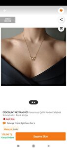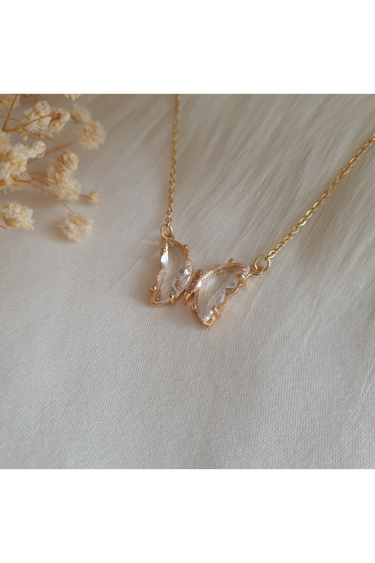 Kararmaz Çelik Kelebek Kristal Altın Renk Kolye Kararmaz Çelik Kelebek Kristal Altın Renk Kolye 810 تک سایز