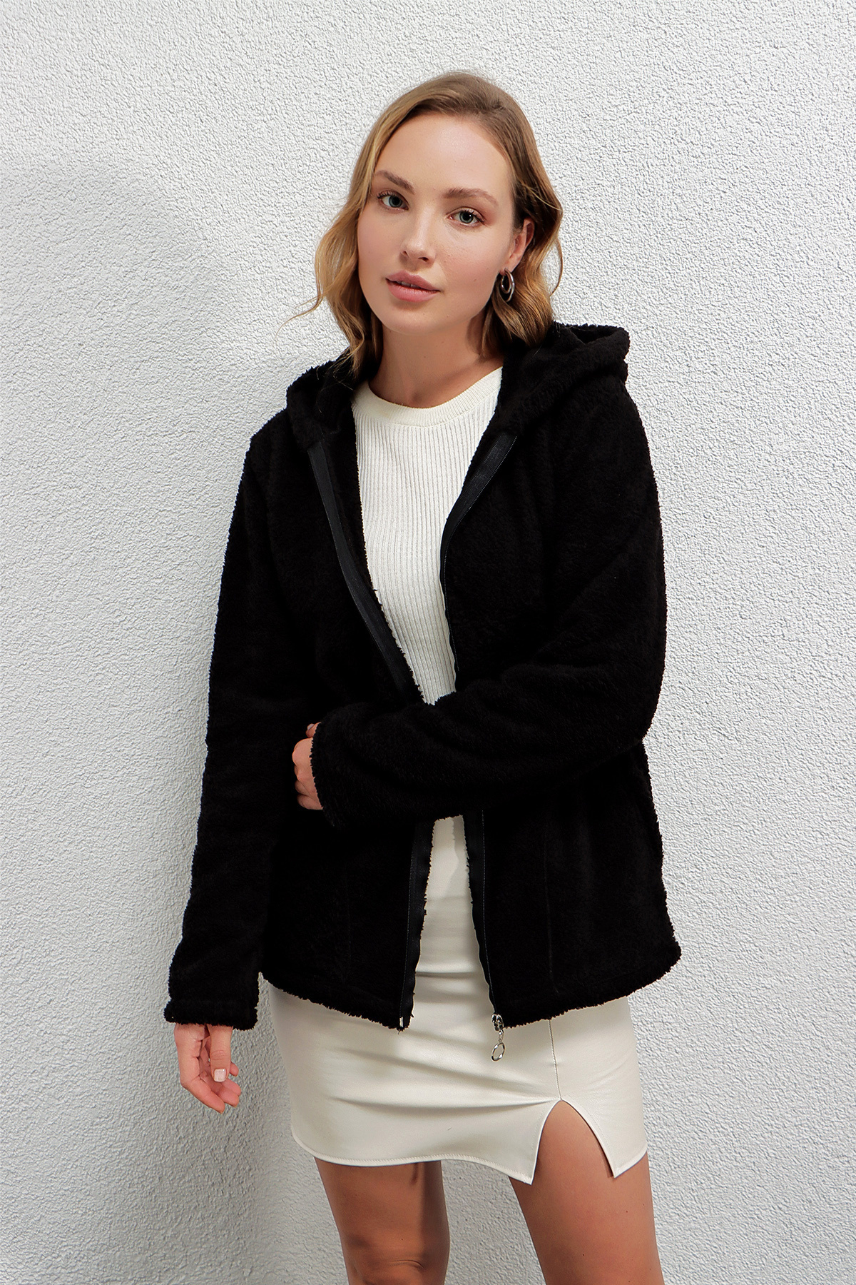 Kadın Welsoft esnek kumaş Siyah Peluş Yumoş Önü Fermuarlı Kapüşonlu Ceket HZL23W-DSB110081 Kadın Welsoft esnek kumaş Siyah Peluş Yumoş Önü Fermuarlı Kapüşonlu Ceket HZL23W-DSB110081 42