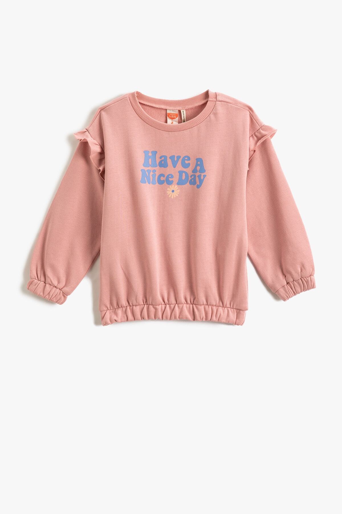 Fırfırlı Detaylı Baskılı Sweatshirt Manşetleri ve Beli Lastikli Uzun Kollu Bisiklet Yaka Fırfırlı Detaylı Baskılı Sweatshirt Manşetleri ve Beli Lastikli Uzun Kollu Bisiklet Yaka 3WMG10246AK 2-4 Yaş