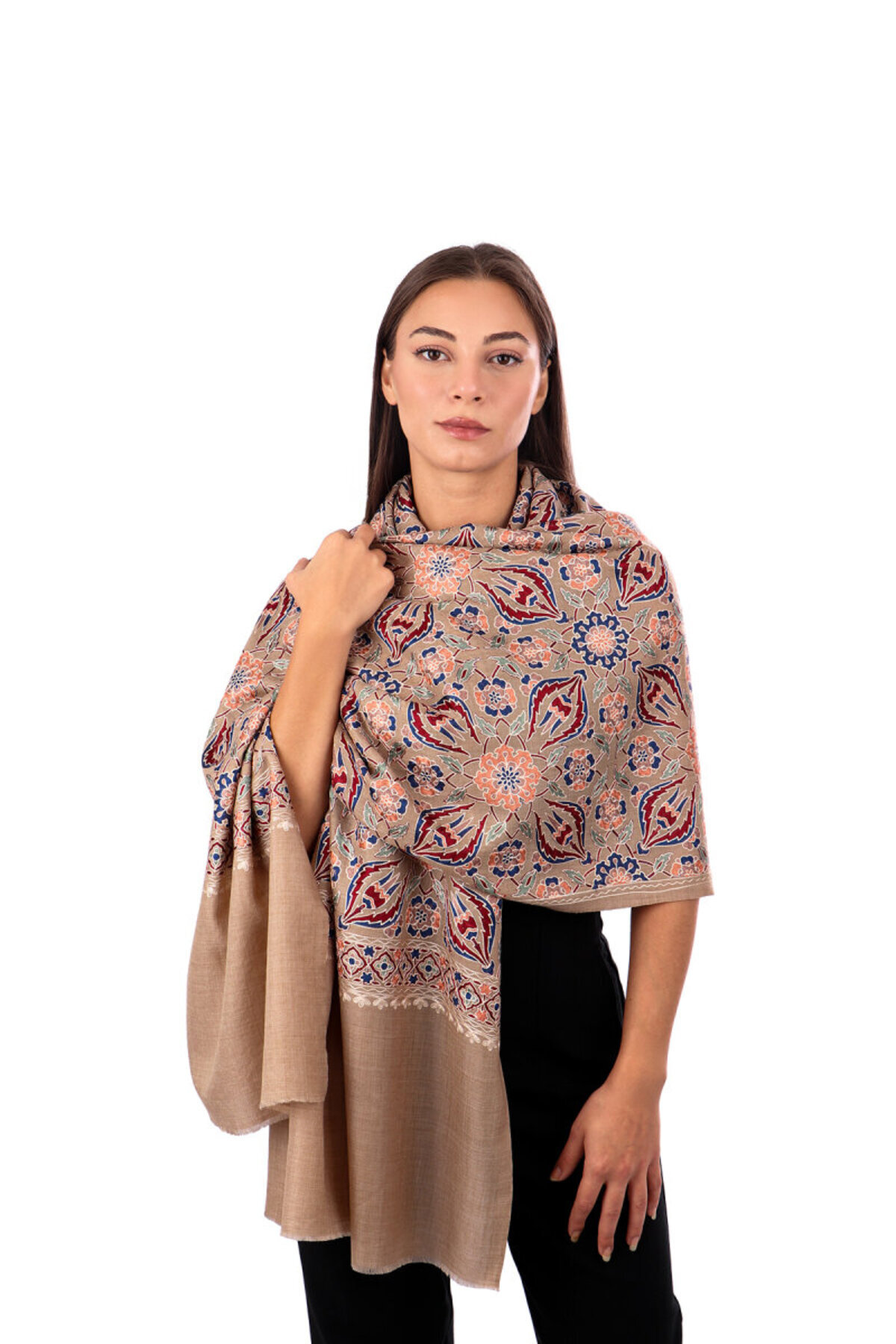 100% Yıkanmış Yün Nakışlı Şal 100% Yıkanmış Yün Nakışlı Şal A-0100438-D-05 70 x 200