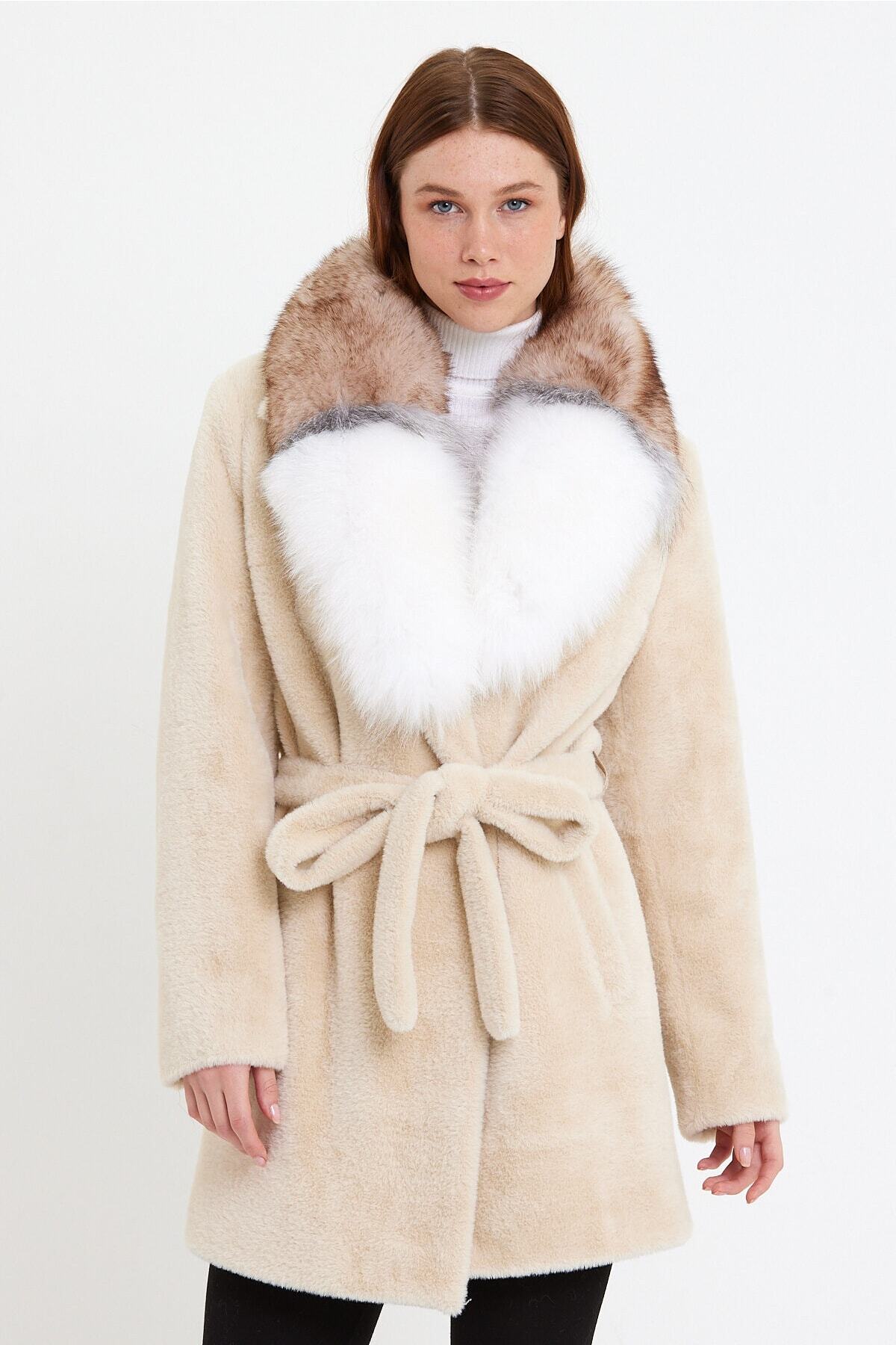 Bej Alkantara Kumaş Kadın Kaban Kapüşon Kürklü, (regular Fıt) Ovalalk Bej Alkantara Kumaş Kadın Kaban Kapüşon Kürklü, (regular Fıt) Ovalalk OVLALK 2XL