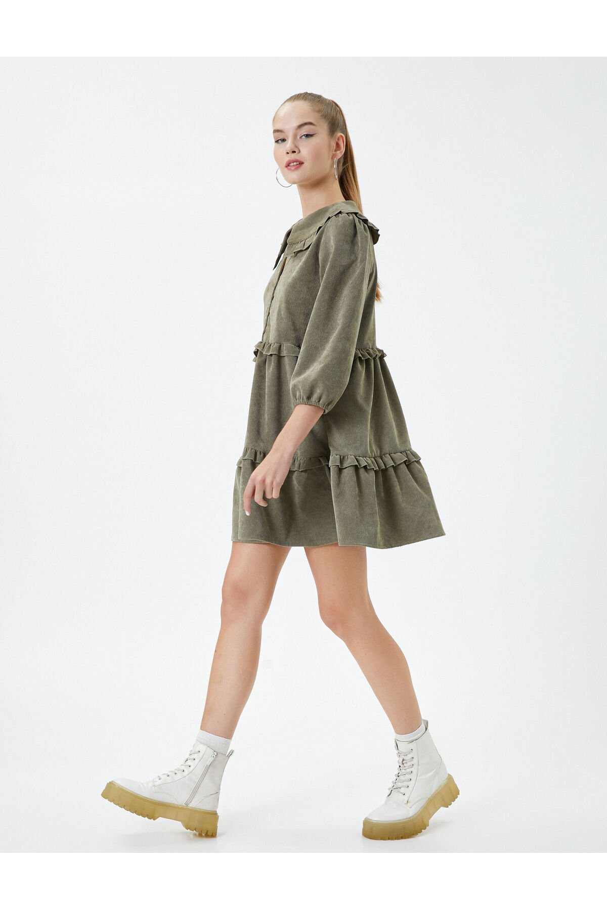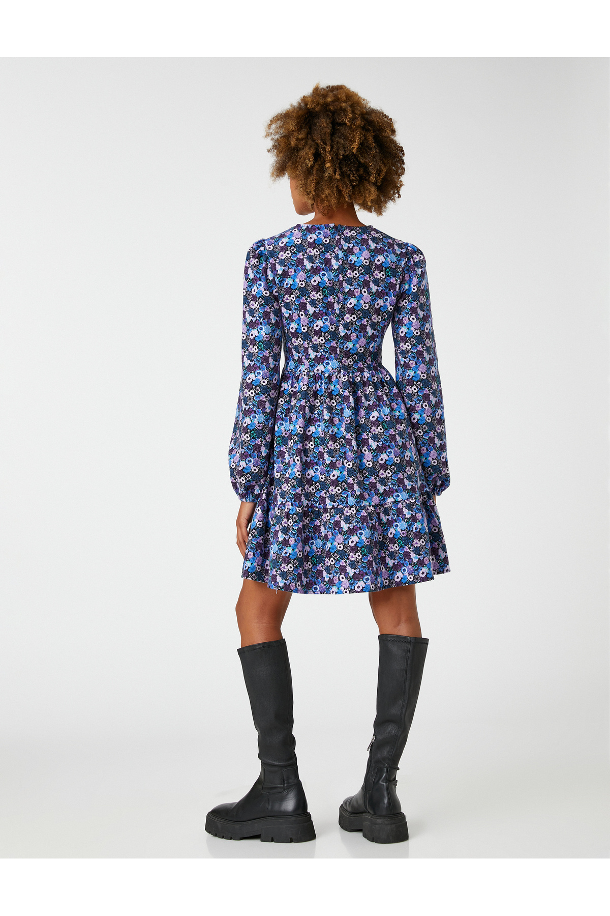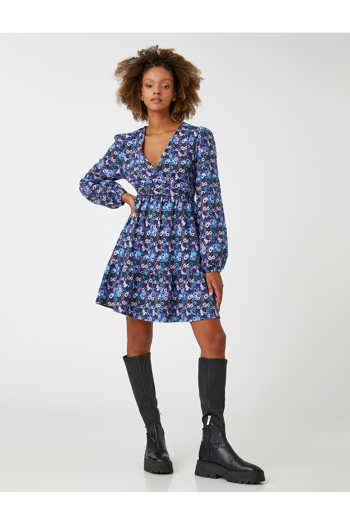 Çiçekli Kışlık Elbise Mini V Yaka Balon Kollu Anvelop Çiçekli Kışlık Elbise Mini V Yaka Balon Kollu Anvelop 3WAL80111IW 46