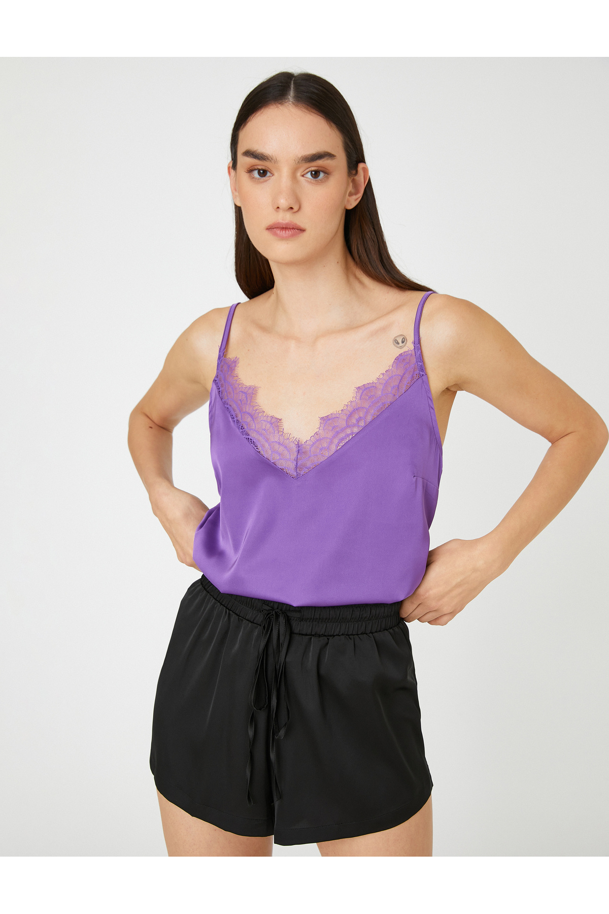Saten Pijama Üstü Ince Askılı Dantel Detaylı Saten Pijama Üstü Ince Askılı Dantel Detaylı 3WLK90011MW 42