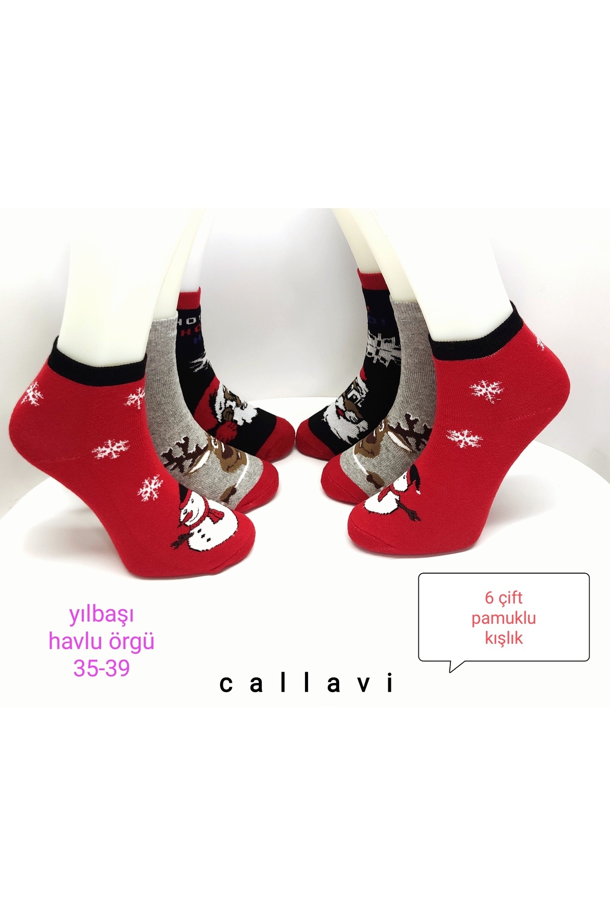 Yılbaşı Havlu Çorap Yarım Konç Patik Unisex 6 Çift Yılbaşı Havlu Çorap Yarım Konç Patik Unisex 6 Çift 0703 35-39