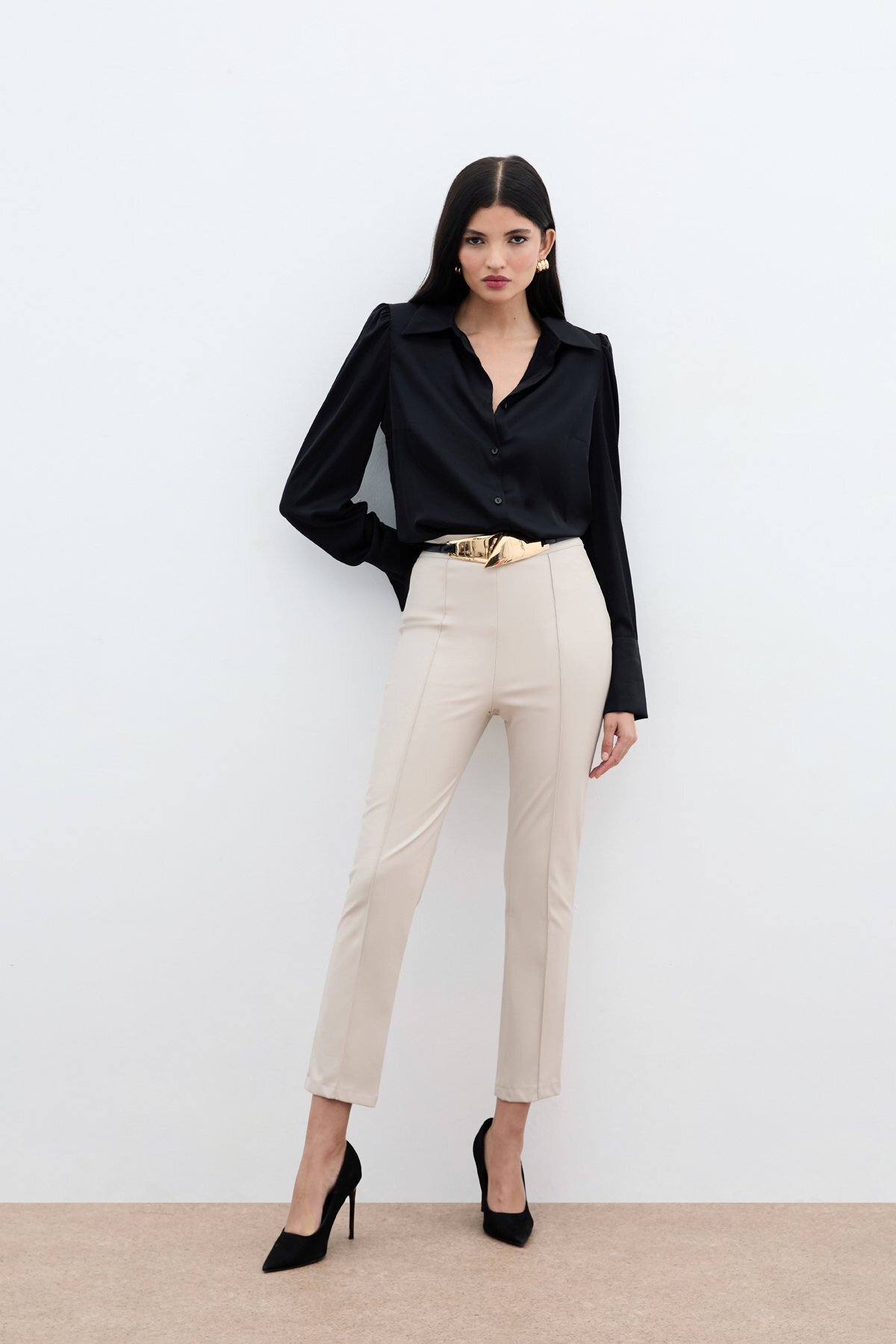 Yüksek Bel Kemerli Pantolon - Bej Yüksek Bel Kemerli Pantolon - Bej STN139KPA2029 42