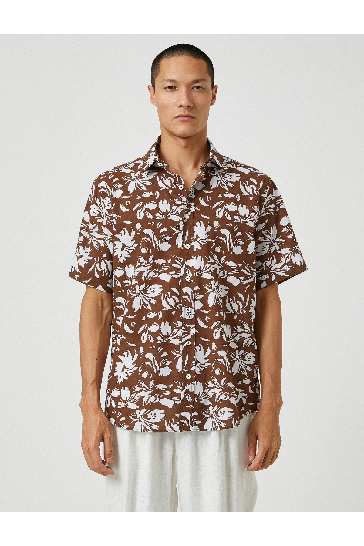 Yazlık Gömlek Çiçekli Kısa Kollu Klasik Yaka Yazlık Gömlek Çiçekli Kısa Kollu Klasik Yaka 3SAM60007HW 2XL