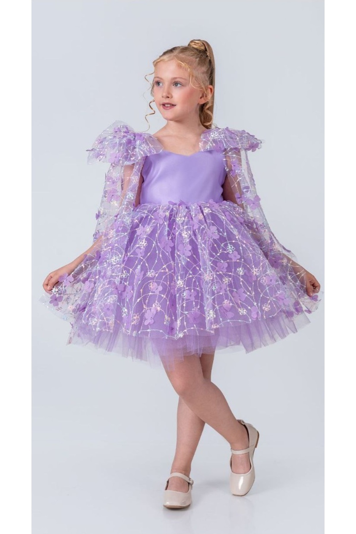Lila Çiçekli Tek Omuz Kız Çocuk Prenses Elbise Lila Çiçekli Tek Omuz Kız Çocuk Prenses Elbise TYC00671761040 8 Yaş