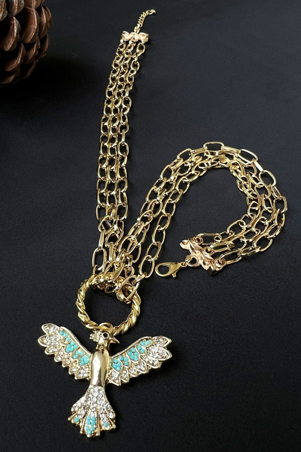 Turkuaz Anka Kuşu Üç Sıra Zincir Kolye Turkuaz Anka Kuşu Üç Sıra Zincir Kolye 7220100201 تک سایز
