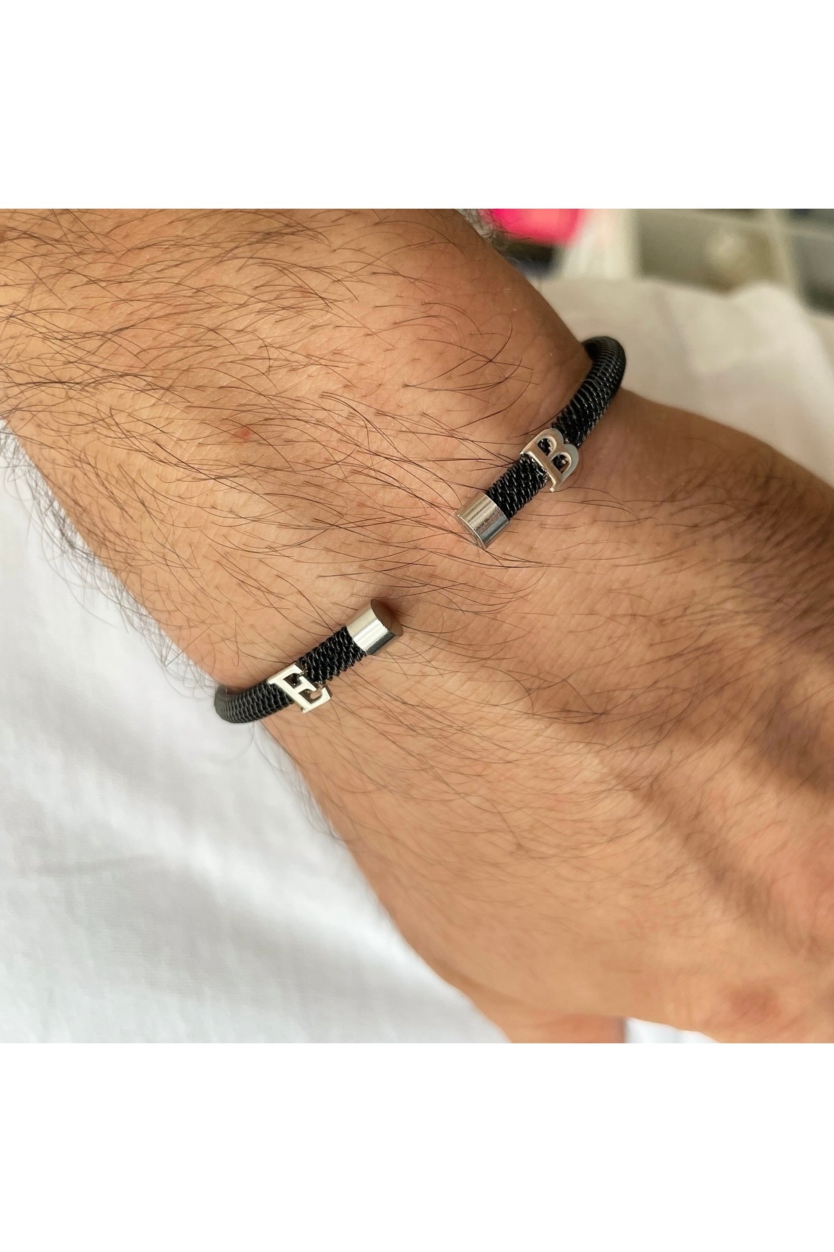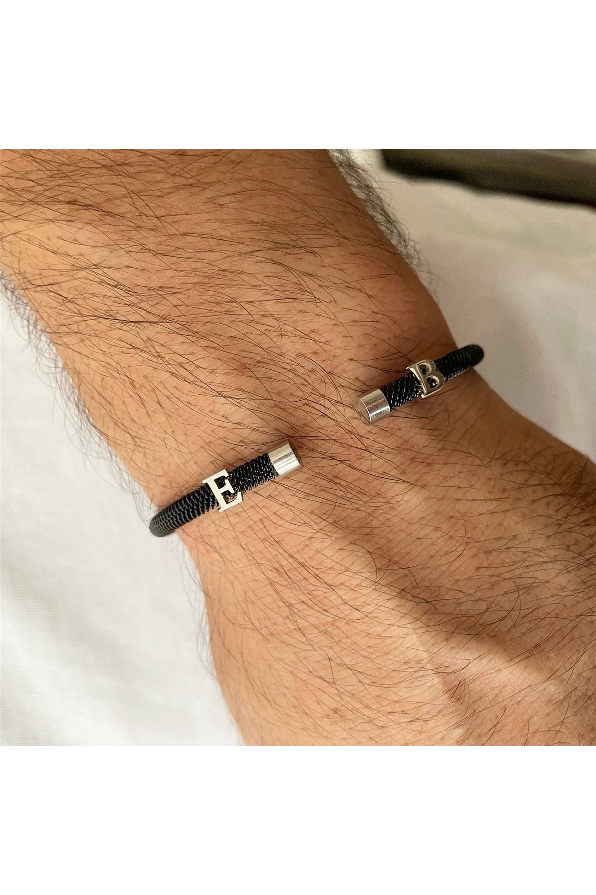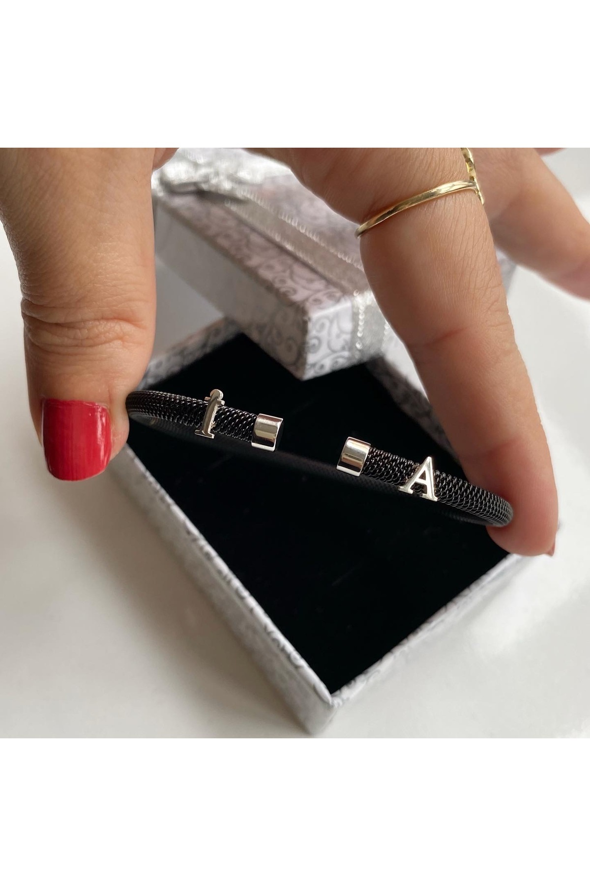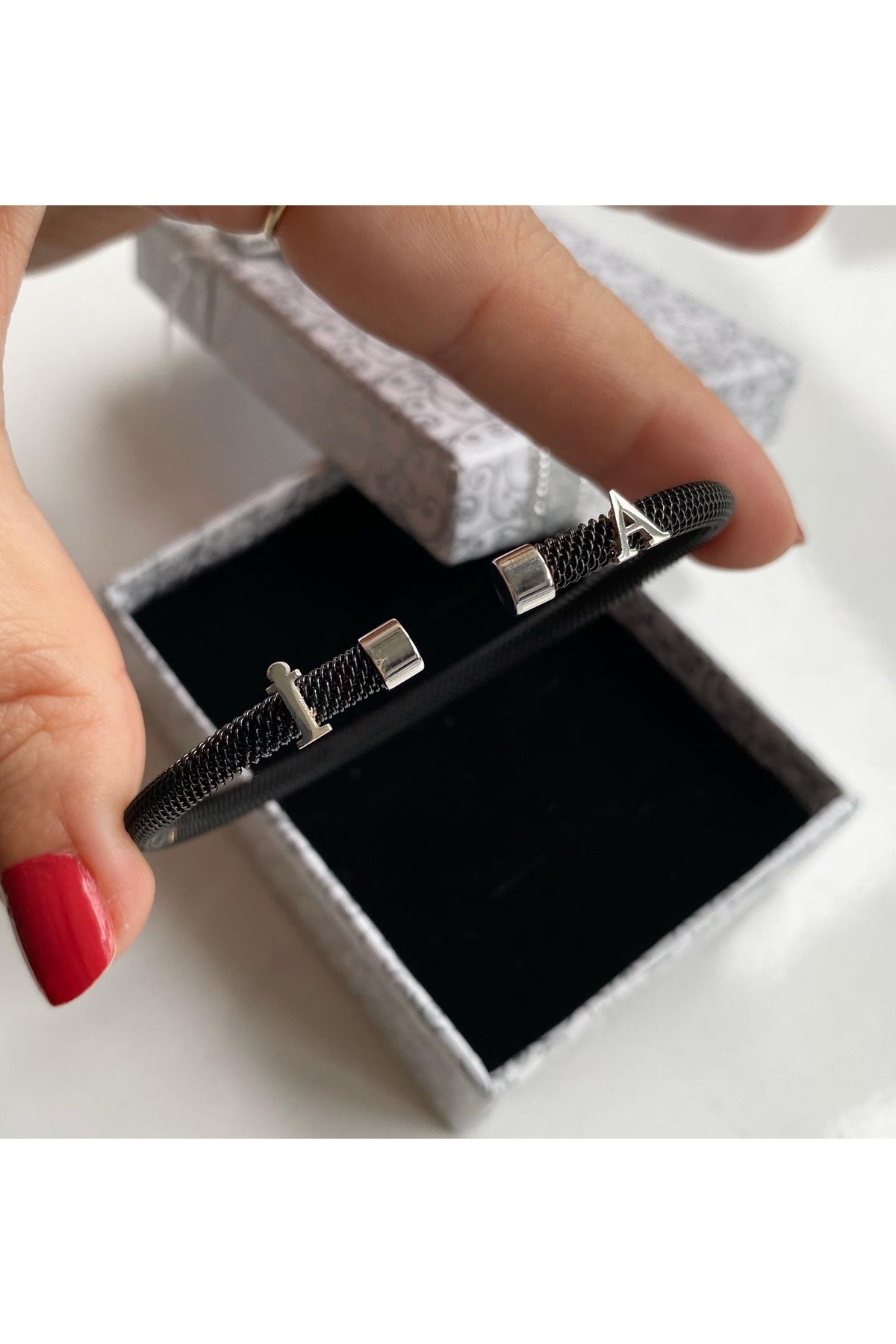 925 Ayar Gümüş Beyaz Harf Detaylı Siyah Çelik Bileklik 925 Ayar Gümüş Beyaz Harf Detaylı Siyah Çelik Bileklik Smr942 6 cm