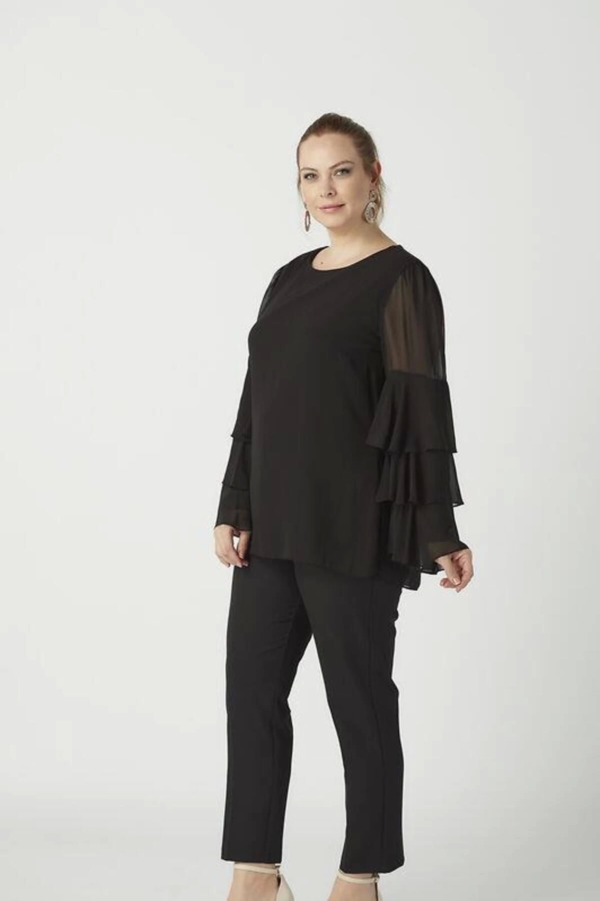 28009 Kolları Fırfırlı Büyük Beden Bluz Siyah 28009 Kolları Fırfırlı Büyük Beden Bluz Siyah 280099S 50