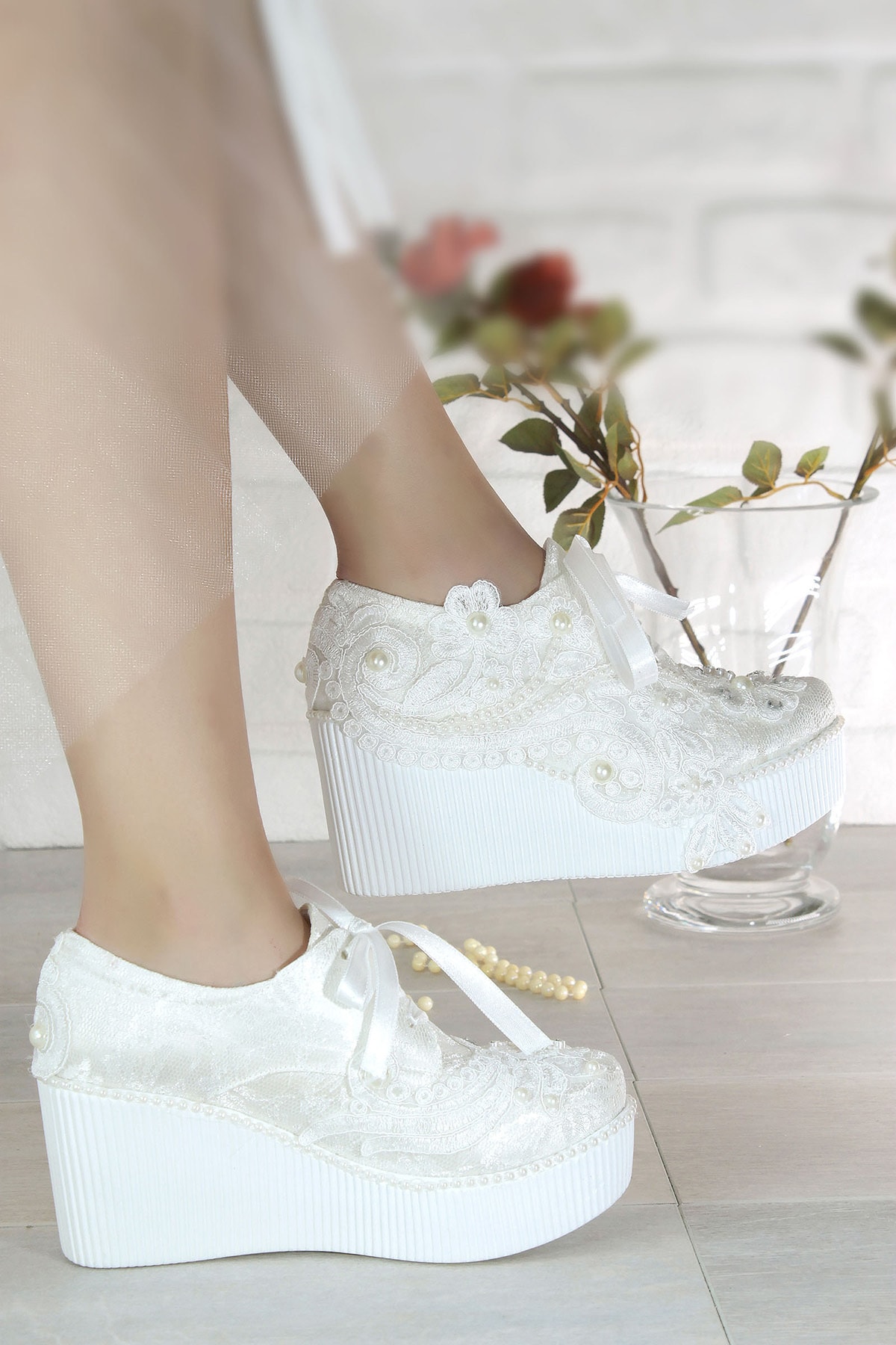 Kadın Ekru 6 Cm Düz Taban Güpürlü Spor Gelin Ayakkabısı Kadın Ekru 6 Cm Düz Taban Güpürlü Spor Gelin Ayakkabısı 252ilgipark 40