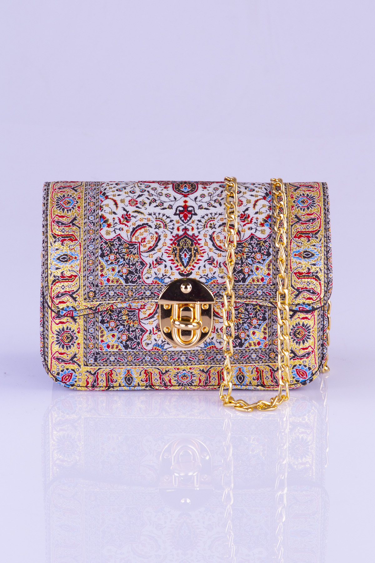 Zincirli Dokuma Kilim Desenli Kadın Omuz Çanta 1049.09 Zincirli Dokuma Kilim Desenli Kadın Omuz Çanta 1049.09 تک سایز