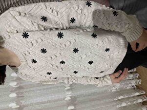 Kadın Bej Standart Beden Nakış Işlemeli Oversize Triko Kazak Kadın Bej Standart Beden Nakış Işlemeli Oversize Triko Kazak 1014ss Standart