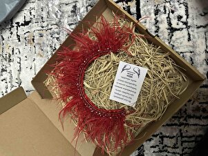 Kırmızı Kristal Taş Ve Tüylü Kına Tacı Kırmızı Kristal Taş Ve Tüylü Kına Tacı TYC00674068236 تک سایز
