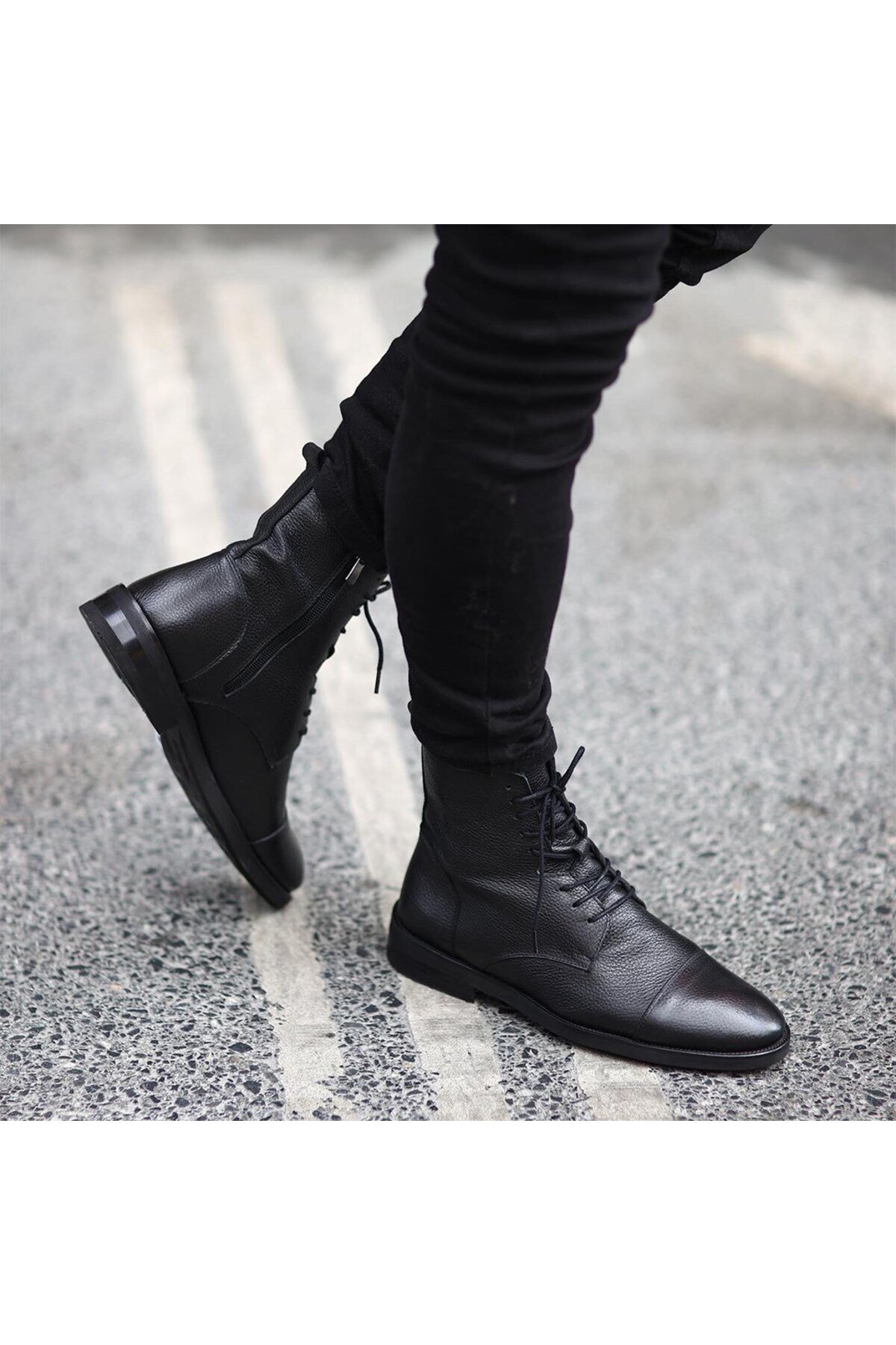 - Siyah Deri Bağcıklı, Fermuarlı Erkek Bot 102-8008-01EVA - Siyah Deri Bağcıklı, Fermuarlı Erkek Bot 102-8008-01EVA 43