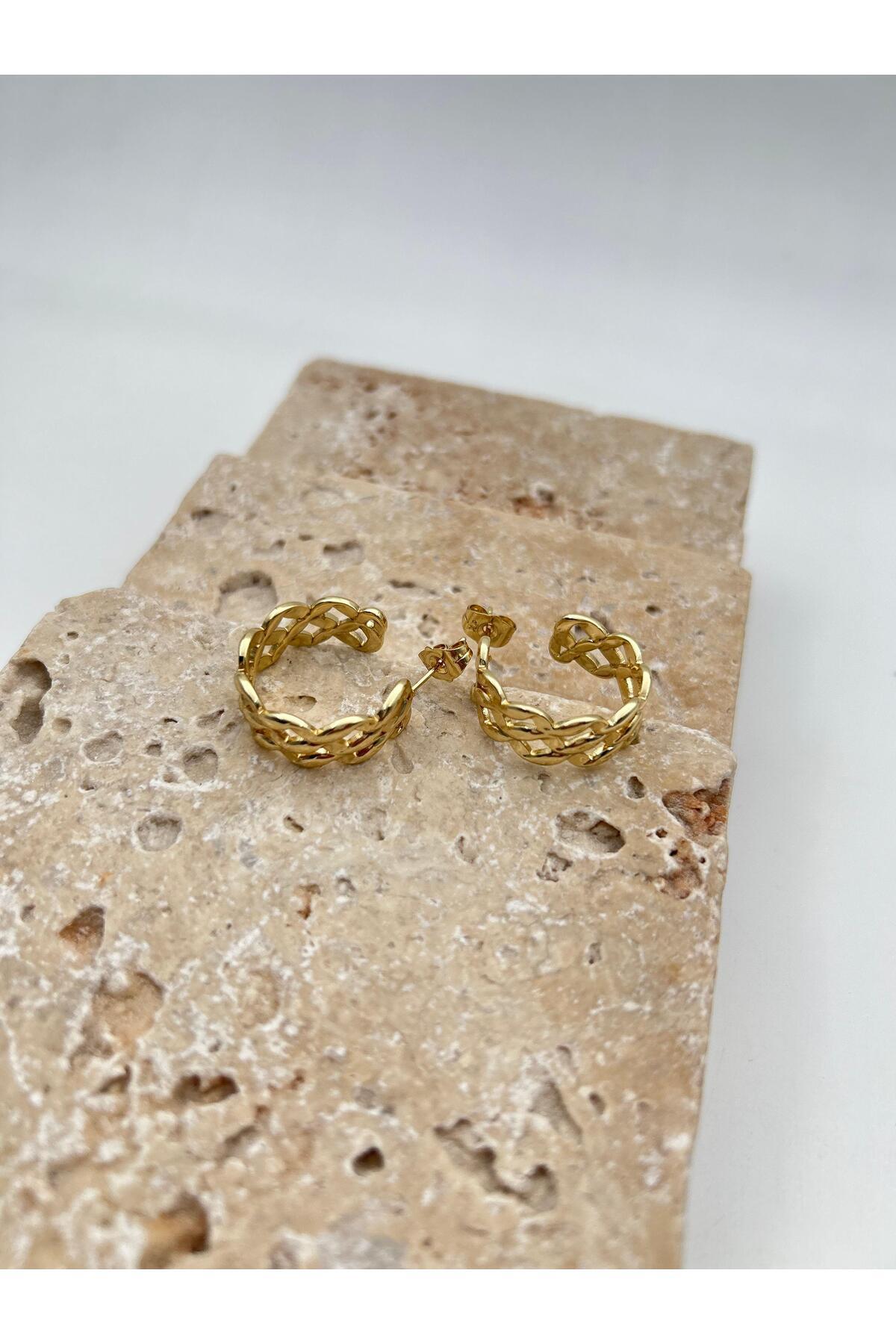 Örgü Model Gold Halka 3’lü Set Küpe Örgü Model Gold Halka 3’lü Set Küpe 82739292729 0