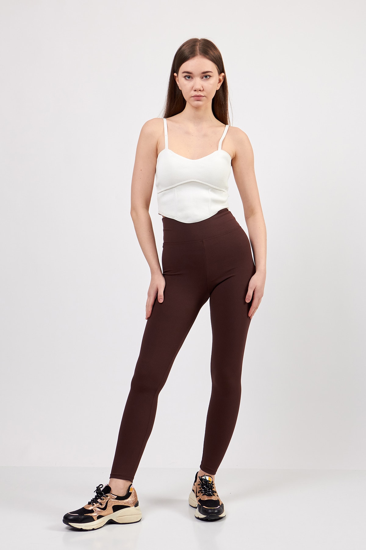Ekstra Yüksek Bel Toparlayıcı Kiremit Renk Fitilli Tayt Ekstra Yüksek Bel Toparlayıcı Kiremit Renk Fitilli Tayt 2244 XL
