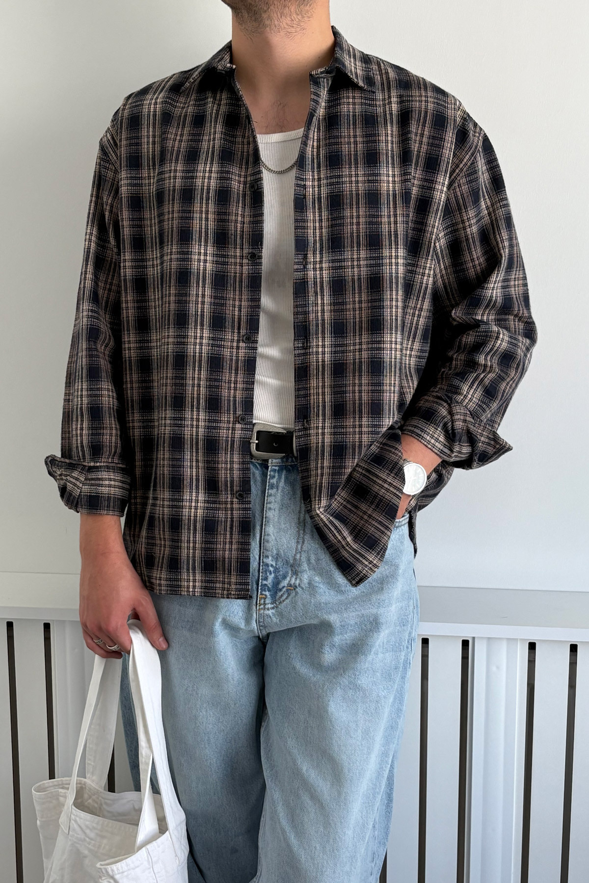 Erkek Kahverengi Klasik Kesim Cepli Düz Uzun Kol Gömlek Erkek Kahverengi Klasik Kesim Cepli Düz Uzun Kol Gömlek Classc1002 XL