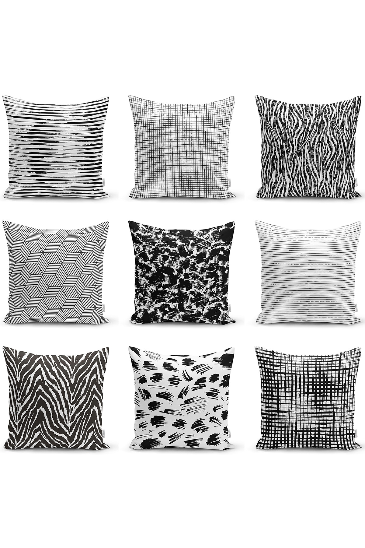 Çift Taraflı Modern Siyah Beyaz Çizgi Motifli Dekoratif Raşel Örme Kırlent Kılıfı Çift Taraflı Modern Siyah Beyaz Çizgi Motifli Dekoratif Raşel Örme Kırlent Kılıfı Rh-9lu69 43 x 43