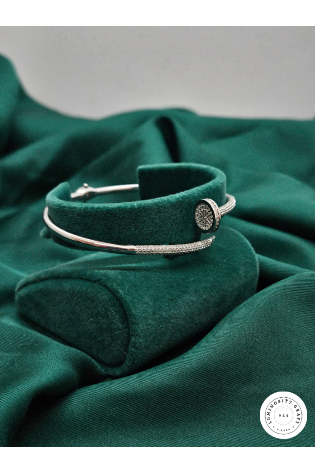 Gümüş Zirkon Taşlı Kelepçe Tasarım Bileklik Gümüş Zirkon Taşlı Kelepçe Tasarım Bileklik RVZ8049548151 تک سایز
