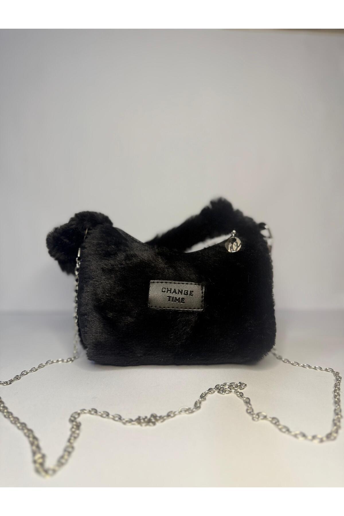 Siyah Puufi Baget Yumuşak Peluş Tüylü Baguette Çanta Siyah Puufi Baget Yumuşak Peluş Tüylü Baguette Çanta PLS-571 تک سایز