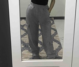 Modern Jogger Kadın Eşofman Altı Paça Ve Yan Kargo Cepli / Açık Gri Modern Jogger Kadın Eşofman Altı Paça Ve Yan Kargo Cepli / Açık Gri EGNKARGO3İP XL