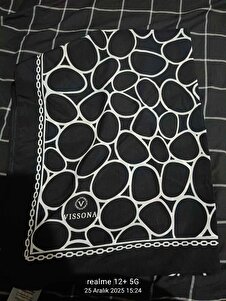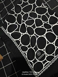 Lüks Medine Ipeği Geometrik Desenli Siyah - Beyaz Renkli 75x195 Kırışmaz Şal Moss Krep Dikiş Tipi It Lüks Medine Ipeği Geometrik Desenli Siyah - Beyaz Renkli 75x195 Kırışmaz Şal Moss Krep Dikiş Tipi It 11056A 75 x 190