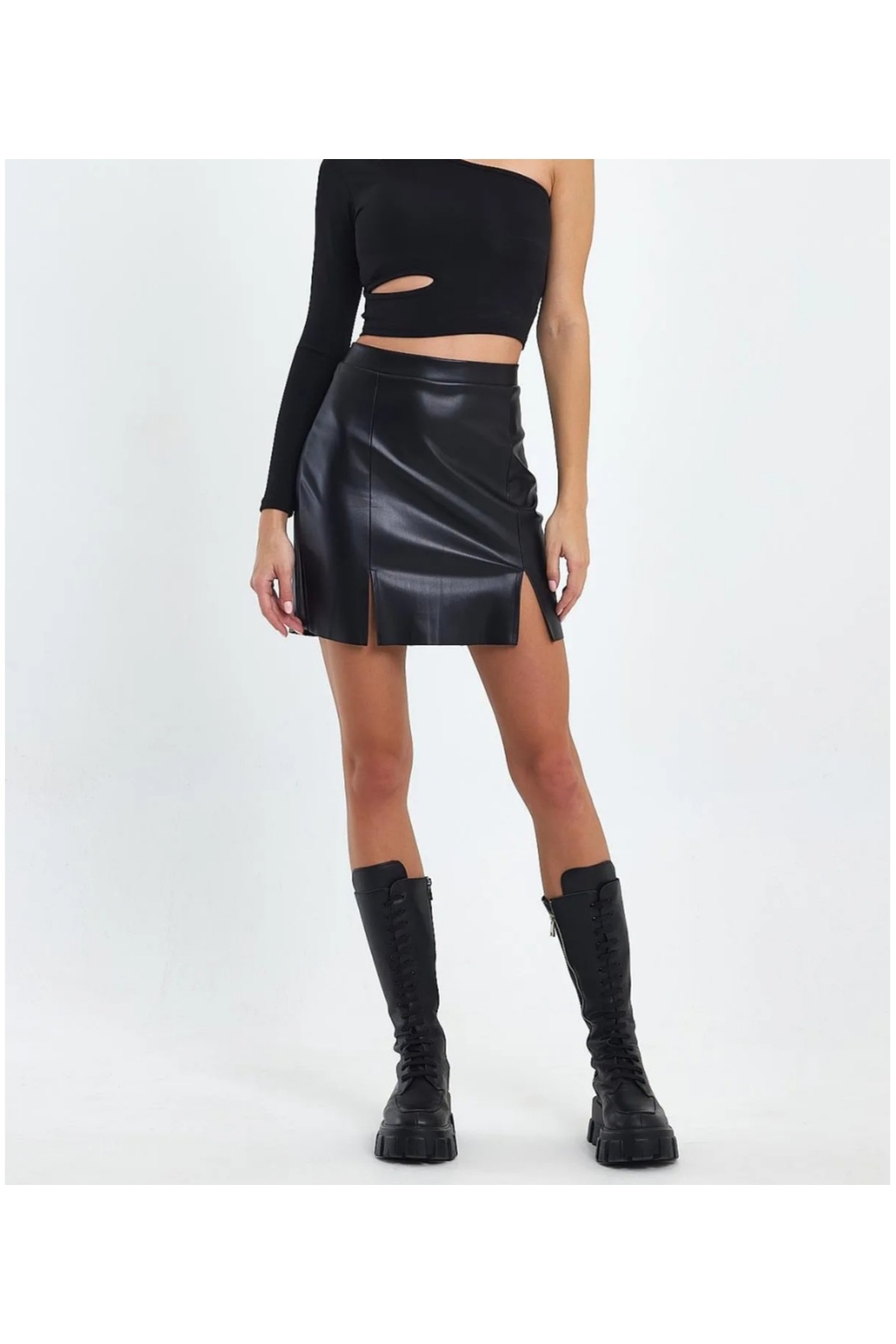 Siyah Suni Deri, Büyük Beden, Beli Lastikli Dar Mini Etek Siyah Suni Deri, Büyük Beden, Beli Lastikli Dar Mini Etek TYC00675434434 2XL