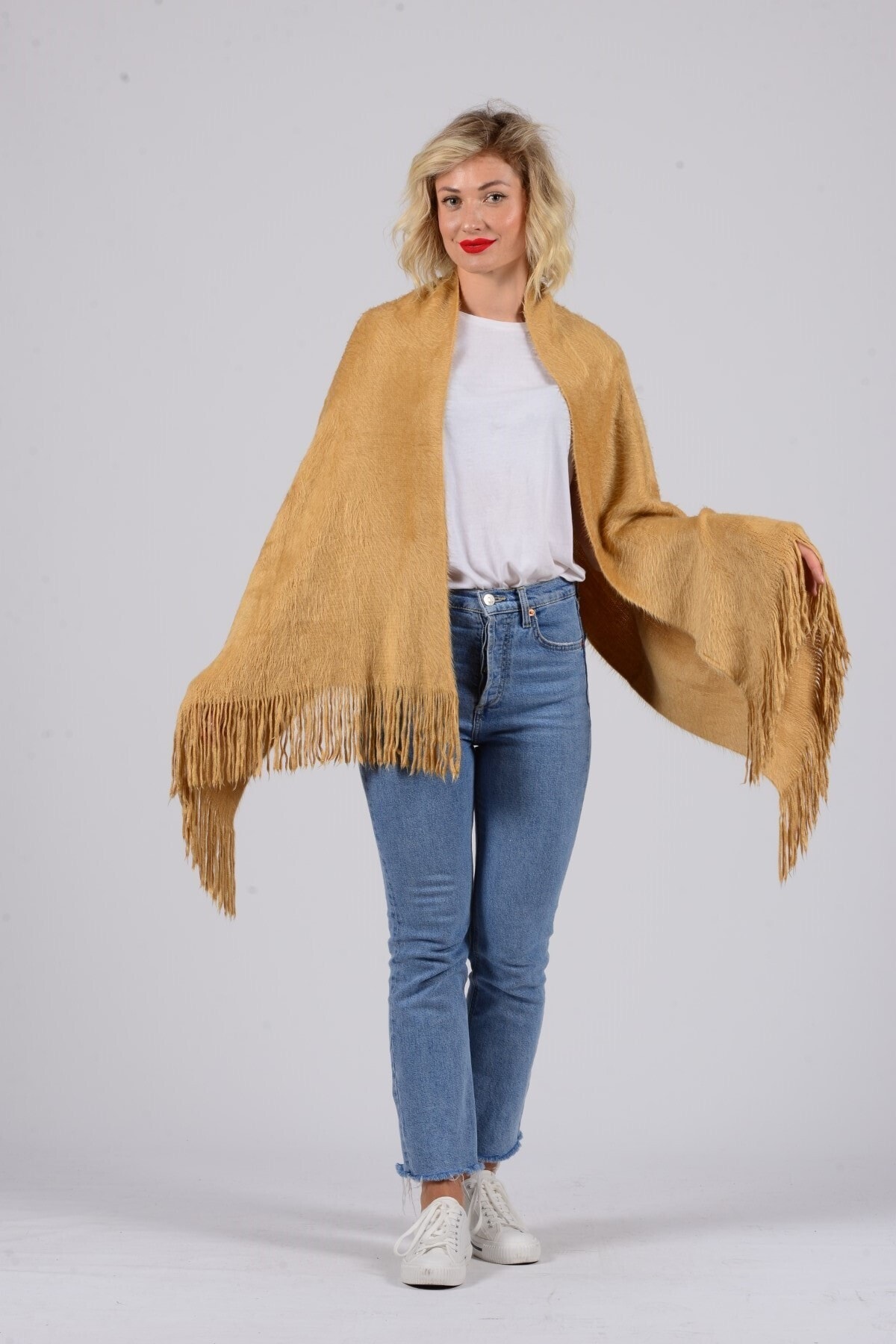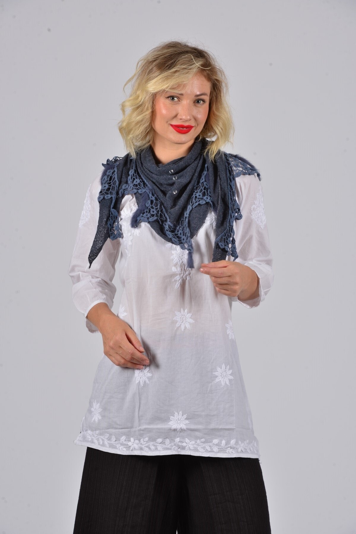 Kadın Lacivert Püsküllü Angora Şal Kadın Lacivert Püsküllü Angora Şal GEZ439 تک سایز