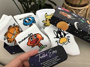 5'li Çizgi Film Karakterli Unisex Tenis Çorabı Kutusu 5'li Çizgi Film Karakterli Unisex Tenis Çorabı Kutusu MOİ2022CRP0088 36-42