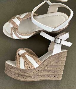 Yüksek Feta Dolgu Taban Çapraz Hasır Biye Düğümlü Fantazi Comfort Sandalet Yazlık Ayakkabı-beyaz Yüksek Feta Dolgu Taban Çapraz Hasır Biye Düğümlü Fantazi Comfort Sandalet Yazlık Ayakkabı-beyaz ABN0415 40