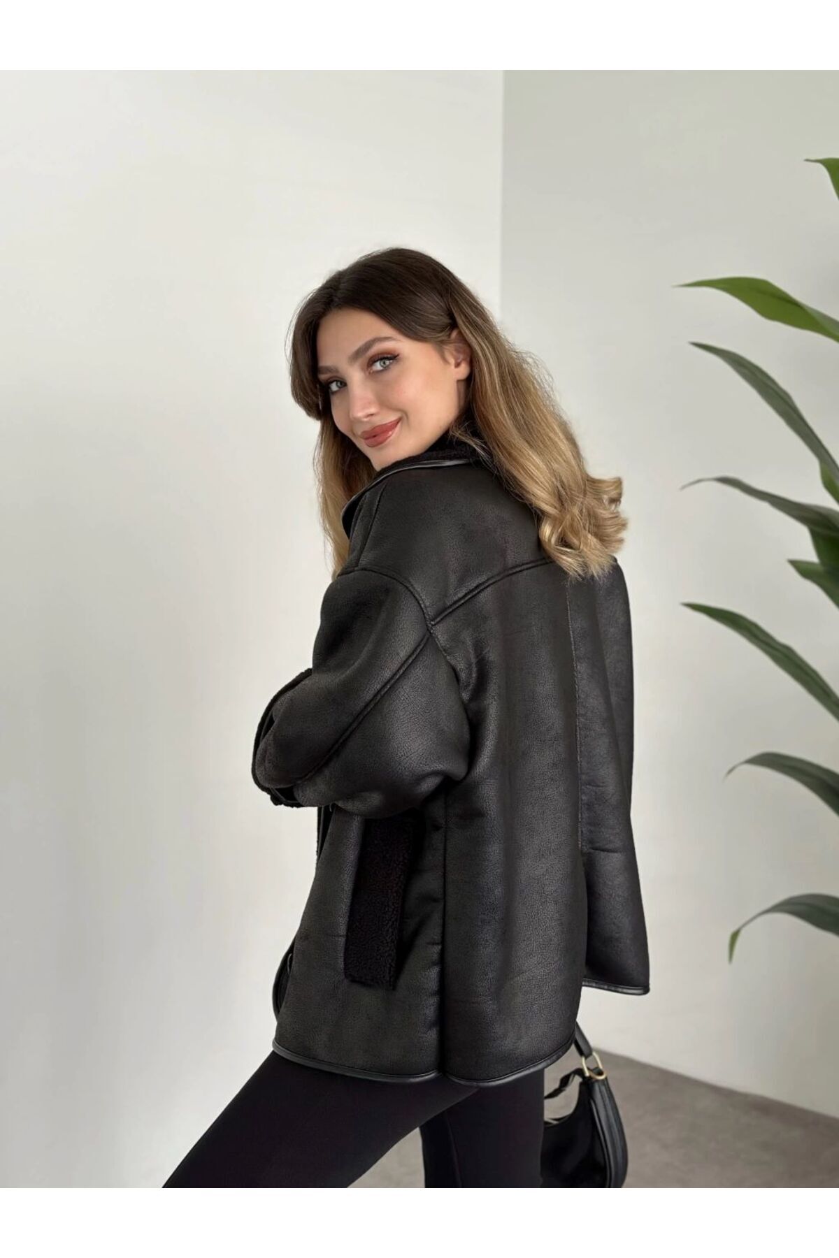 İçi Komple Peluş Kürk Deri Mont Ceket İçi Komple Peluş Kürk Deri Mont Ceket 89898 XL