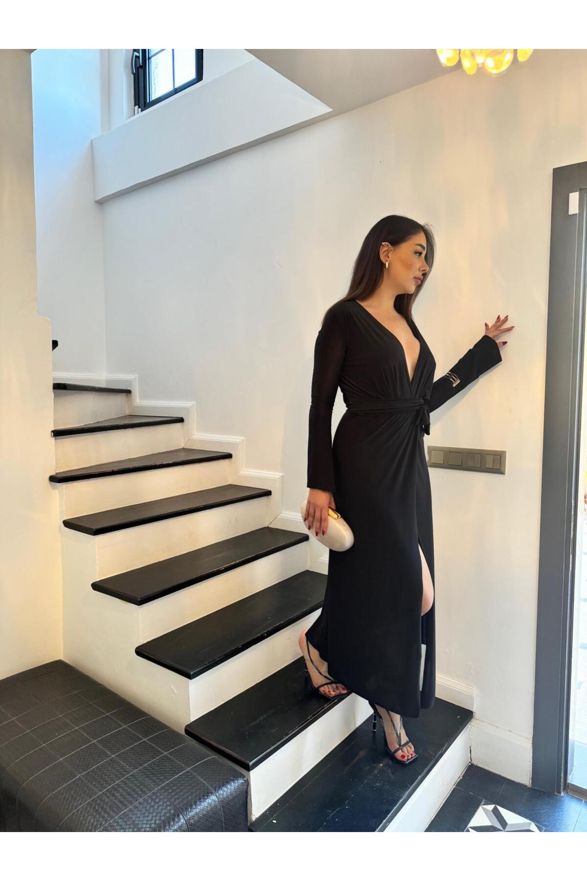 Kadın Yeşil, Kadın Balon Kol Kruvaze Yaka Krep Kumaş Midi Boy Elbise Kadın Yeşil, Kadın Balon Kol Kruvaze Yaka Krep Kumaş Midi Boy Elbise MEY-43458 L