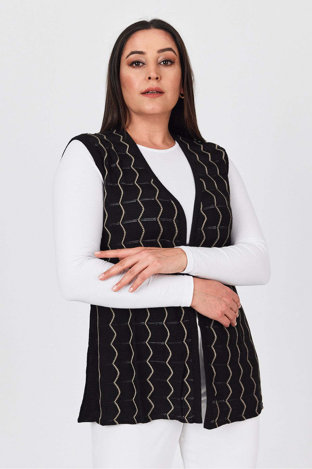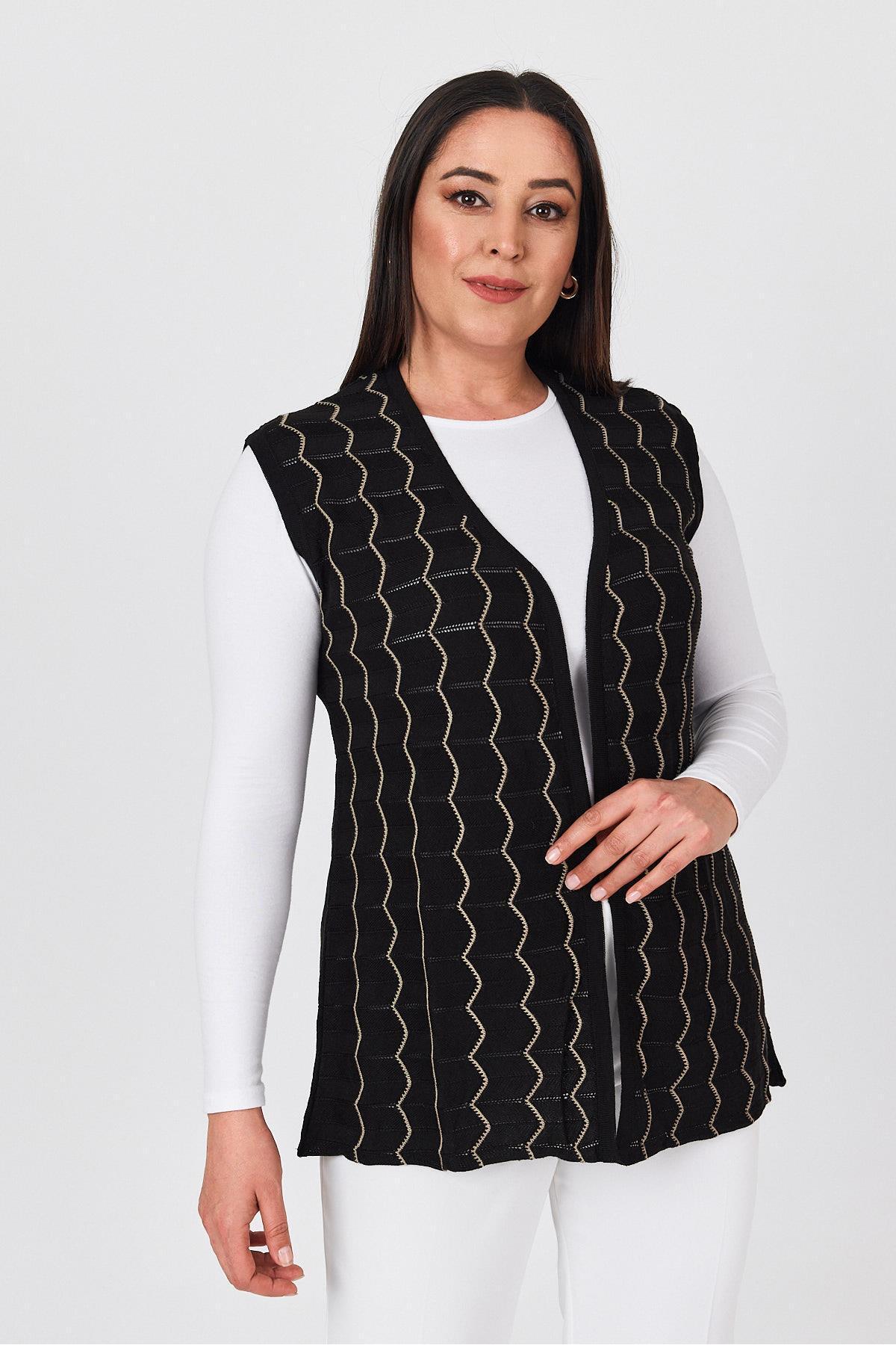 Kadın Siyah Ajurlu Merserize Zikzak Desenli İnce Yazlık Örgü Yelek Kadın Siyah Ajurlu Merserize Zikzak Desenli İnce Yazlık Örgü Yelek 1303 2XL