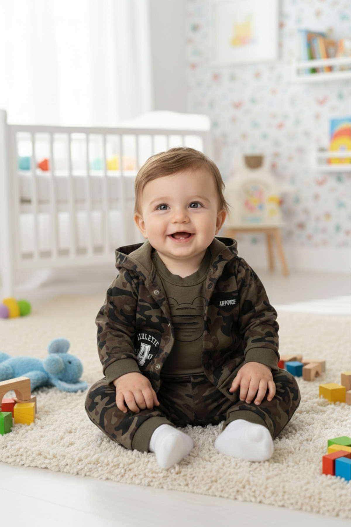 Kapşonlu Kamuflaj Mikili 3 Lü Bebek Takımı K3329 Kapşonlu Kamuflaj Mikili 3 Lü Bebek Takımı K3329 103329BM 3 Ay