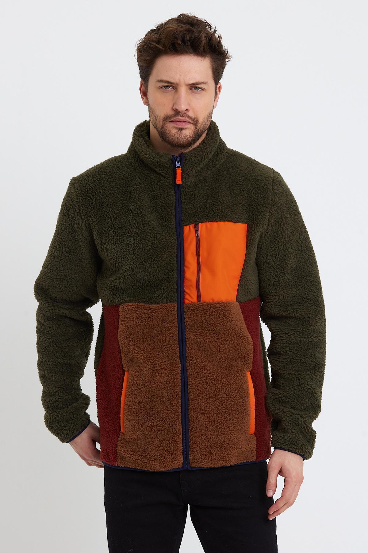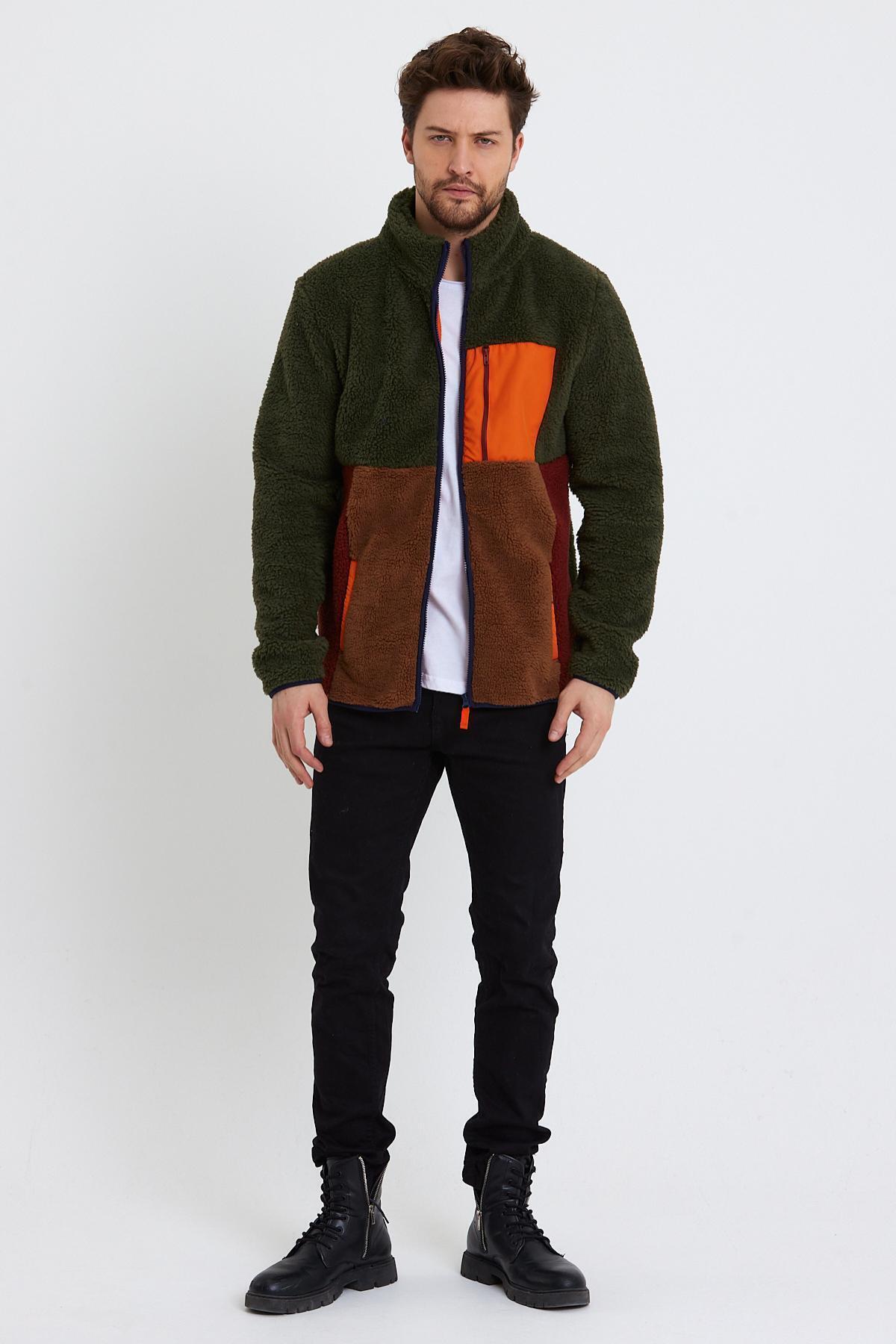 Erkek Fermuarlı Dik Yaka Parçalı Polar Ceket Yeşil Erkek Fermuarlı Dik Yaka Parçalı Polar Ceket Yeşil 472PLST 2XL