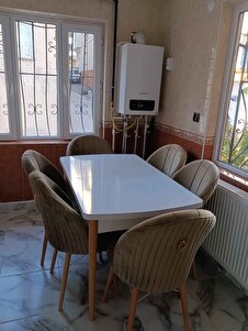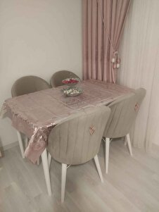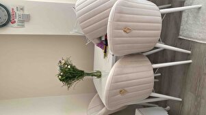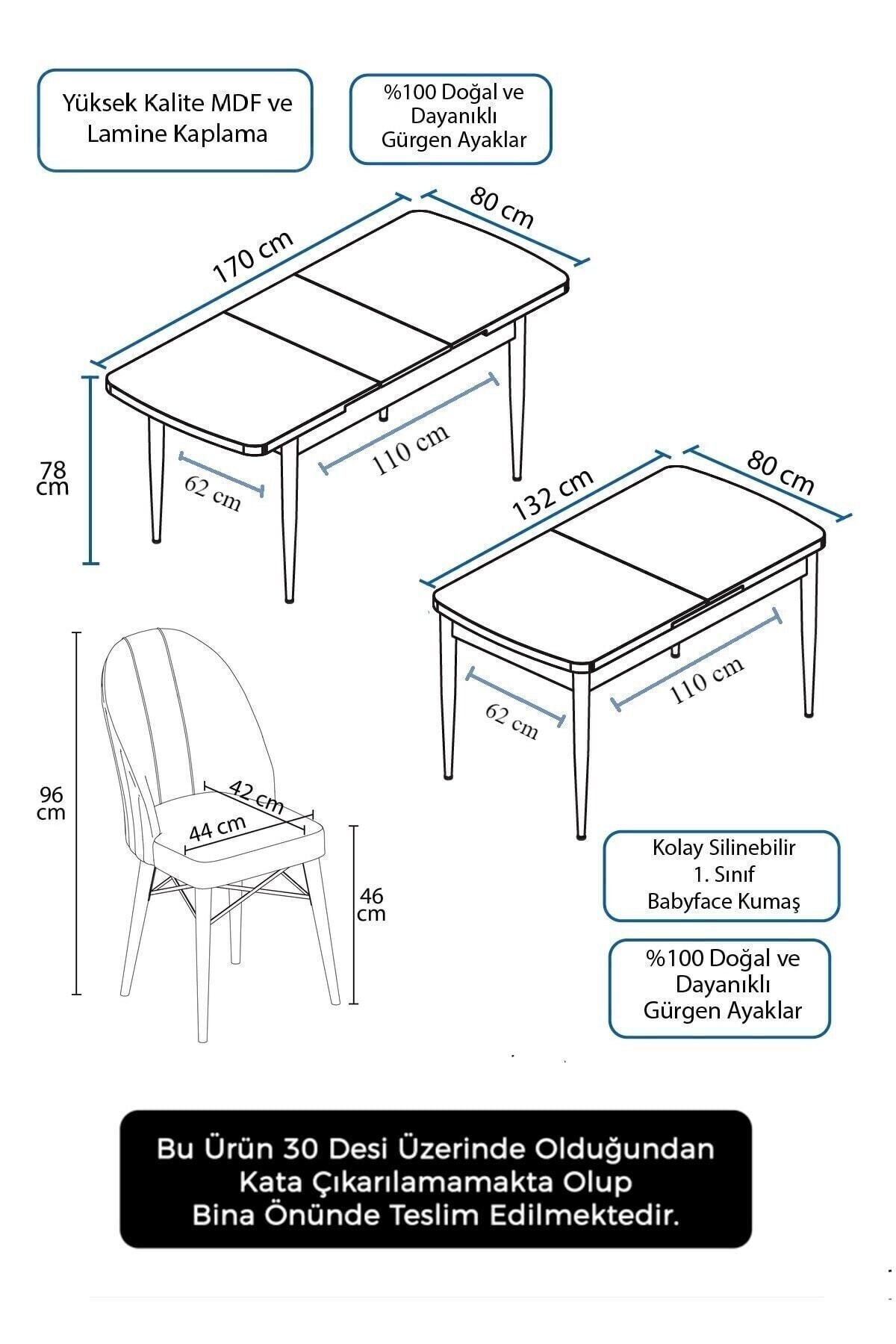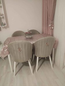 Roz Serisi 80x132 Mdf Açılabilir Beyaz Mutfak Masası Takımı 6 Gold Halkalı Gri Sandalye Roz Serisi 80x132 Mdf Açılabilir Beyaz Mutfak Masası Takımı 6 Gold Halkalı Gri Sandalye ROZBYZ6 تک سایز