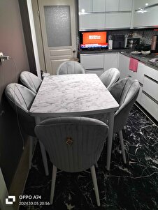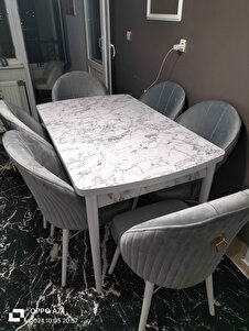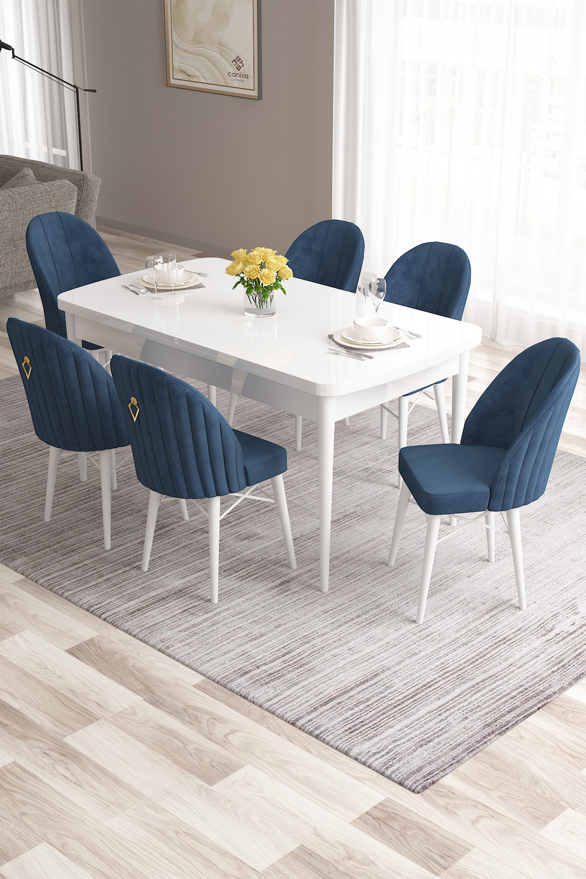 Roz Serisi 80x132 Mdf Açılabilir Beyaz Masa Takımı Gold Halkalı 6 Cappucino Sandalye Roz Serisi 80x132 Mdf Açılabilir Beyaz Masa Takımı Gold Halkalı 6 Cappucino Sandalye ROZBYZ6 تک سایز