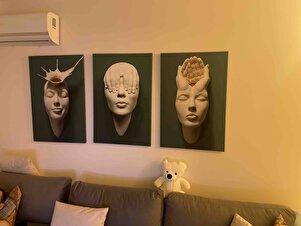 Gözleri Kapalı Petrol Yeşili Duvardan Çıkan Heykel Üçlü Kombin 3 Lü Set Kanvas Tablo Gözleri Kapalı Petrol Yeşili Duvardan Çıkan Heykel Üçlü Kombin 3 Lü Set Kanvas Tablo K7373096 80 x 120