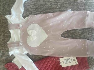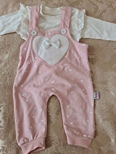 Kalp Desenli Fiyonklu Kız Bebek Tulum Salopet Takım Kalp Desenli Fiyonklu Kız Bebek Tulum Salopet Takım Babymod-DM1B595312 9 - 12 Ay