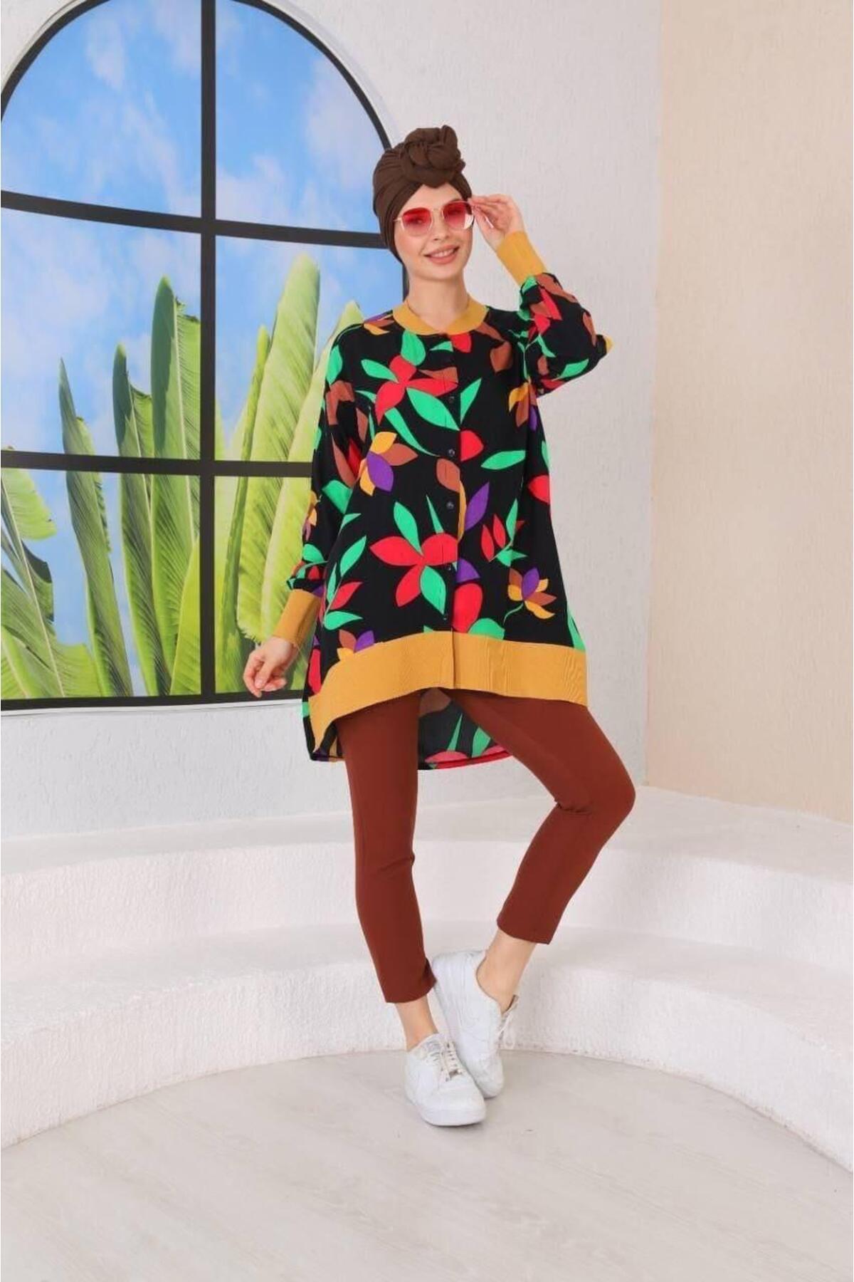Kadın Turuncu Çizgili Tunik Mevsimlik Oversize Kadın Turuncu Çizgili Tunik Mevsimlik Oversize BRA02 L/XL