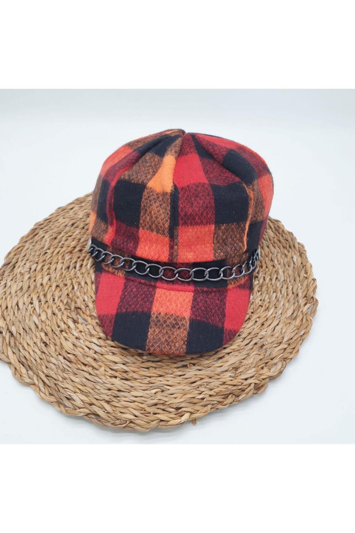 Turuncu Renk Kare Desenli Siperli Şapka Turuncu Renk Kare Desenli Siperli Şapka EGQRTX24 XL