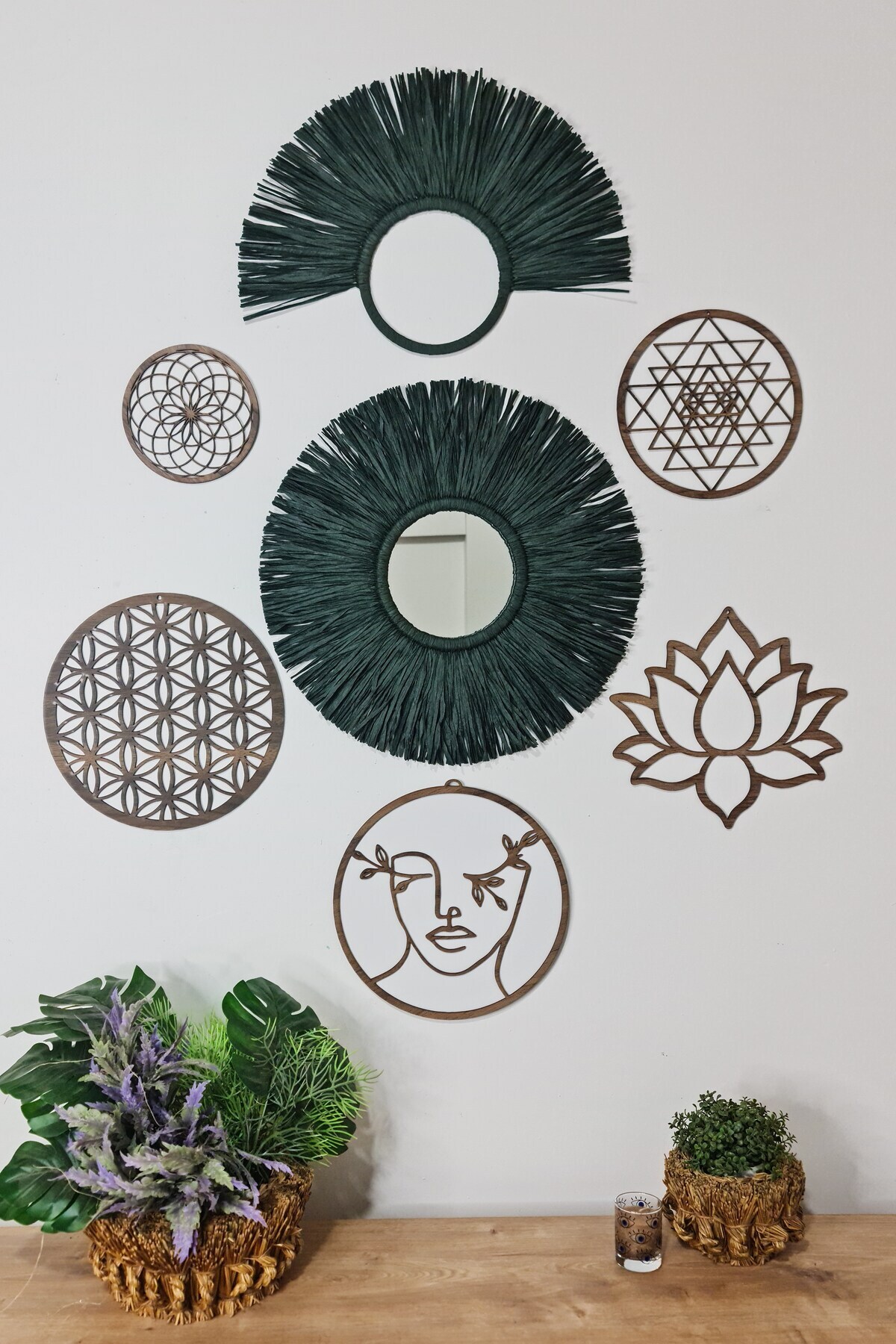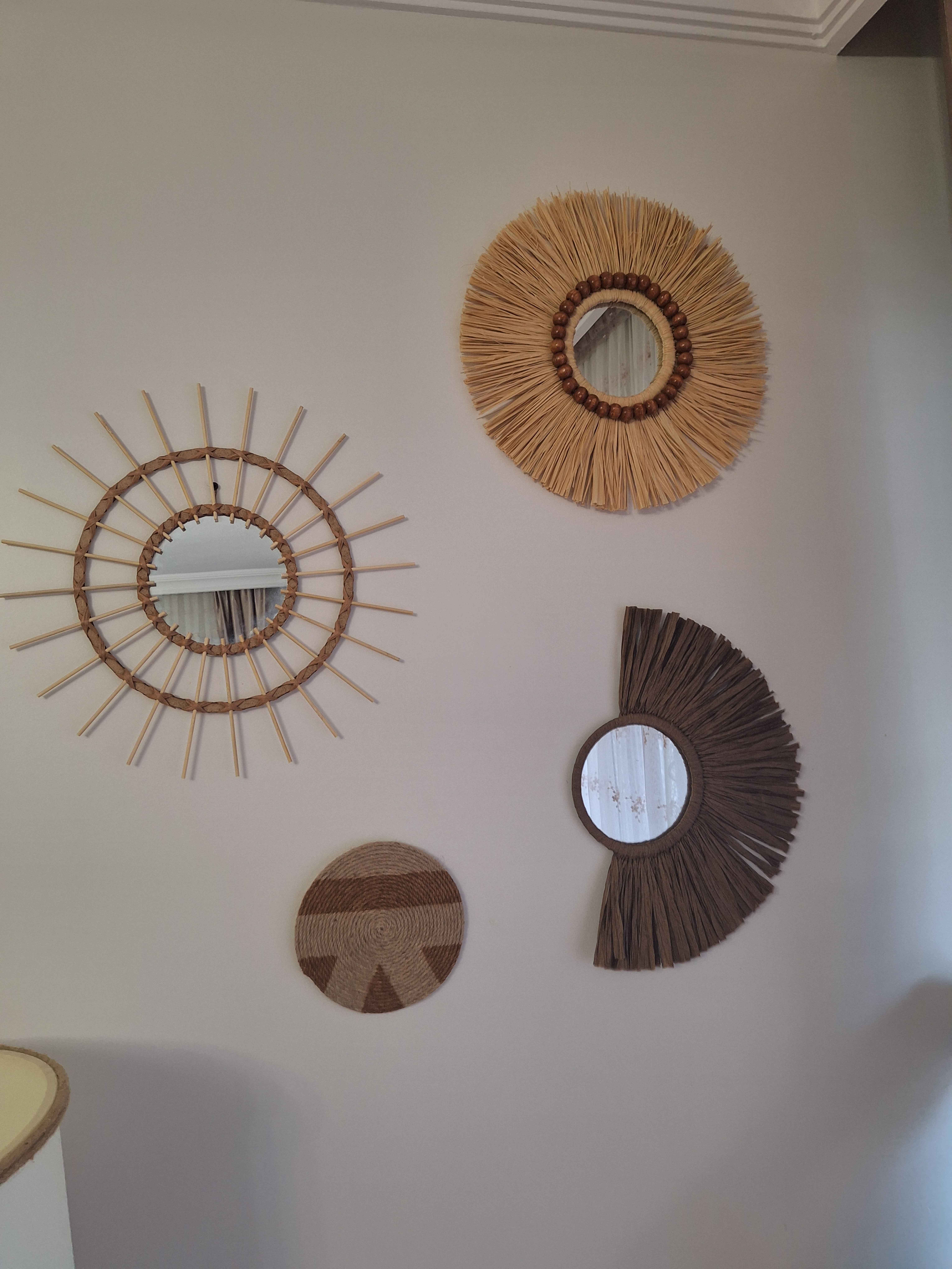 Bohem Duvar Dekoru Aynalı 4'lü Hasır Set Bohem Duvar Dekoru Aynalı 4'lü Hasır Set 086422689098864 تک سایز