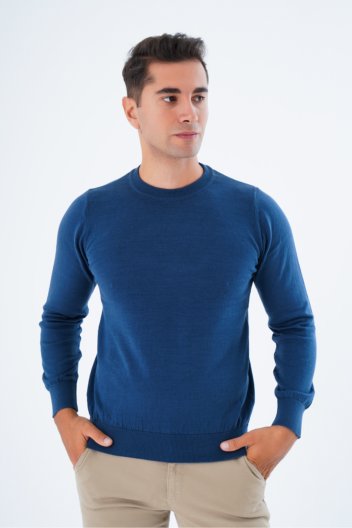 Lacivert Desenli Bisiklet Yaka %100 Pamuk Erkek Kazak Lacivert Desenli Bisiklet Yaka %100 Pamuk Erkek Kazak 4153 L