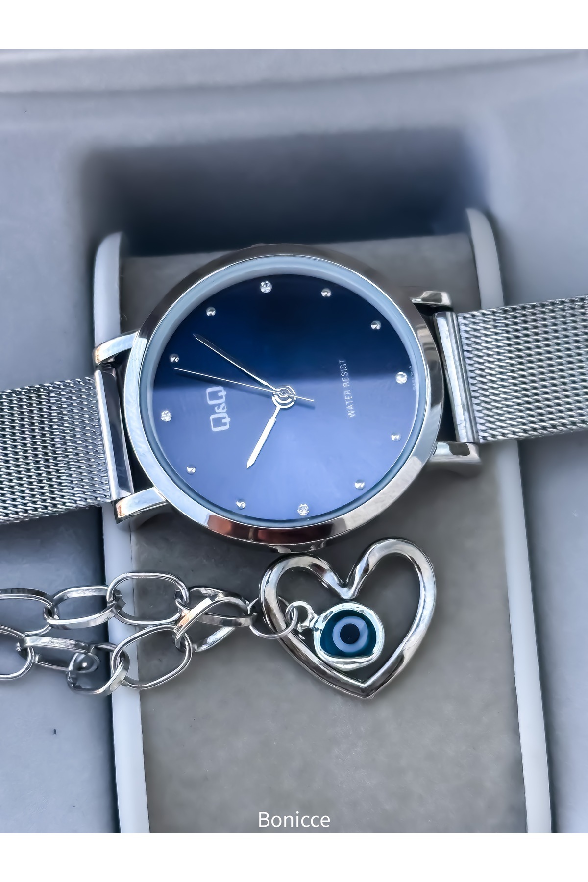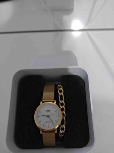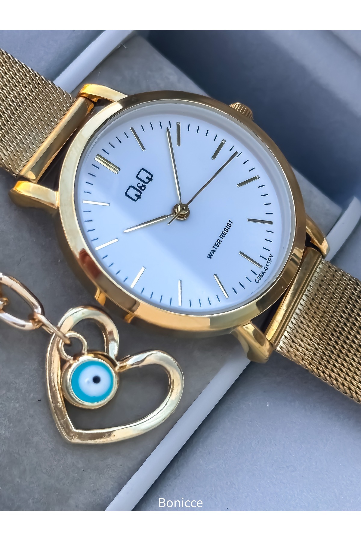 Marka Çelik Hasır Kordon, Su Geçirmez, 2 Yıl Garantili Altın Renk Kadın Kol Saati+bileklik Marka Çelik Hasır Kordon, Su Geçirmez, 2 Yıl Garantili Altın Renk Kadın Kol Saati+bileklik Q&QBNC3 تک سایز
